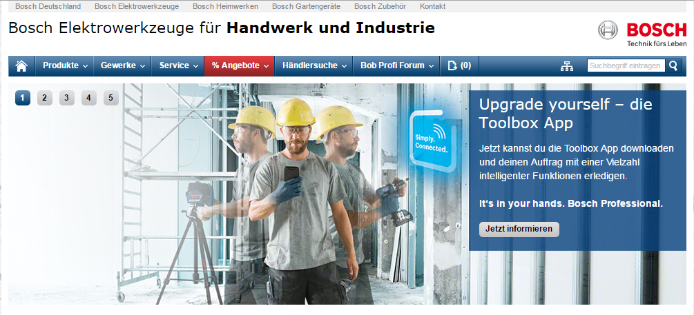 In die Vollen geht Bosch, wenn es darum geht, die deutsche Sprache mit englischen Begriffen aufzumotzen und sich ein internationales Flair zu geben. „Upgrade yourself – die Toolbox App“: Bosch Elektrowerkzeuge weiß, was Handwerker wünschen. „It’s in your hand“. Bosch stellt einen Teil seines Sortiments an Elektrowerkzeugen für Handwerk und Industrie in seinem Werk Murrhardt her. Der gesamte Geschäftsbereich nennt sich, wie es sich bei einem internationalen schwäbischen Konzern gehört, übrigens Bosch Power Tools. Dass die „Bosch Packaging Technology“, einst schnöde Verpackungstechnik genannt, in Waiblingen ihren Sitz hat, sei nur am Rande erwähnt. In der Verpackungstechnik führt sowieso kein Weg an Anglizismen vorbei – und sei es auf Kosten der Verständlichkeit. Sind wir Verpackungslaien wirklich schlauer, wenn uns „Two-in-one Case Packer“ erläutert wird mit dem Hinweis: „Verpacken Sie auf einer Maschine Packungen stehend oder liegend in RSC, HSC oder Retail-/Shelf Ready Kartons!“. Kapiert haben wir aber, dass es sich bei „Seamless. One System“ um nahtlos verpackte Schokoriegel handelt.