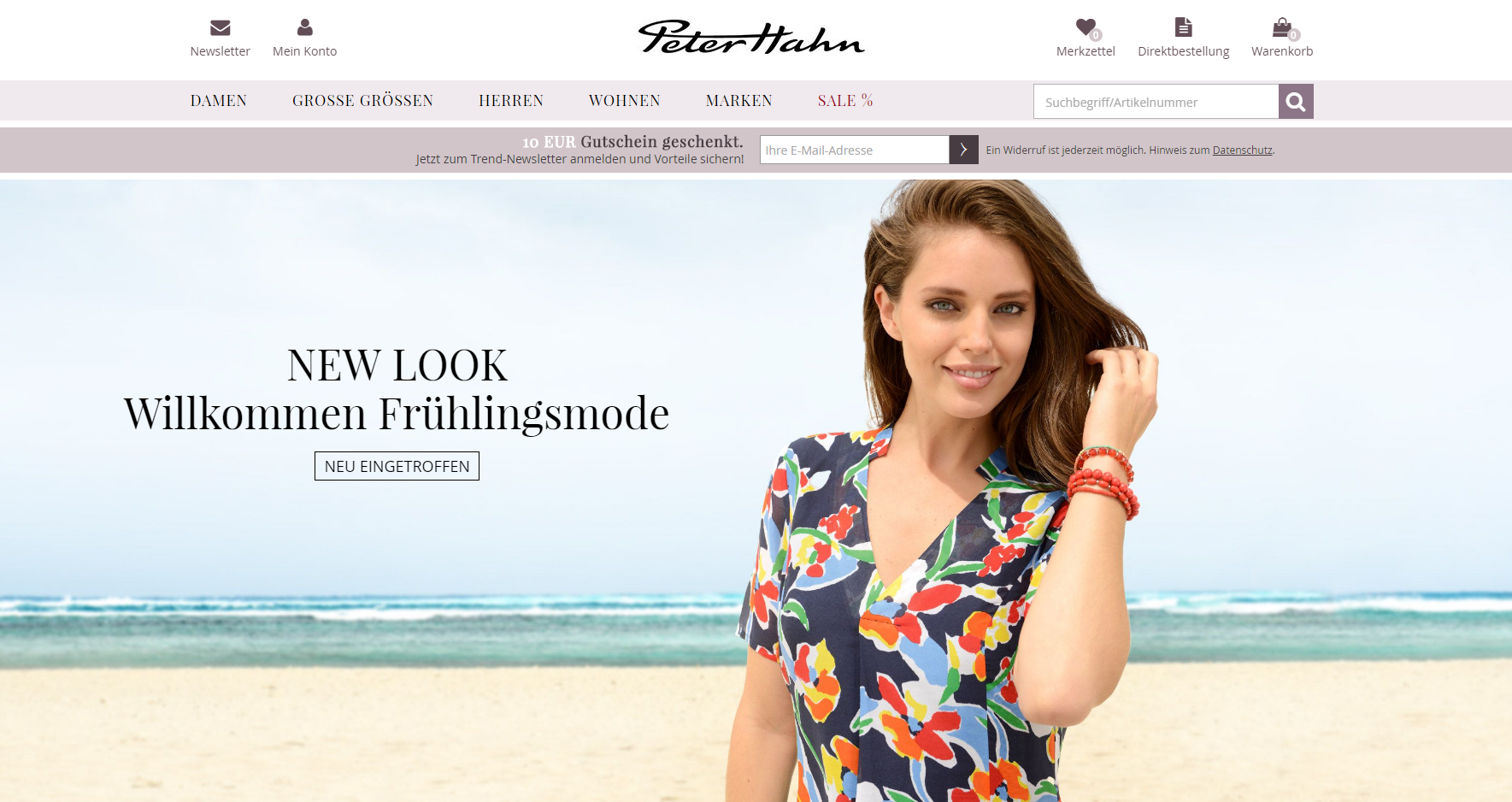 Peter Hahn aus Winterbach kann’s auch nicht lassen: „New Look. Willkommen Frühlingsmode“ oder „Day and Night: Tagsüber korrekt, abends perfekt“ lauten die Schlagworte auf den Startseiten. Ansonsten verschont uns der Modeversand weitgehend mit englischen Begriffen – bis auf das unvermeidliche „Sale“ für Sonderangebote und „Shoppen“ für Einkaufen.