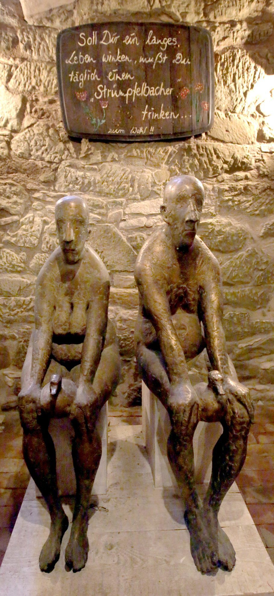 Ja, Respekt haben sie vor ihm. Denn wenn ihn die Leute ansprechen auf seine verdammt ehrlichen Verkörperungen der Menschengestalt, wenn sie vorsichtig einwenden, dass die Leiber für ihren Geschmack wohlgefälliger ausfallen könnten, dann kommt er brutal ehrlich: Man soll sich doch mal umschauen. Wie mit der Zeit alles lastet, der Schwerpunkt nach unten wandert, schwerer und schwerer wird.