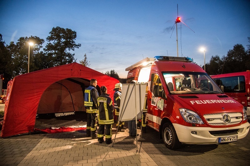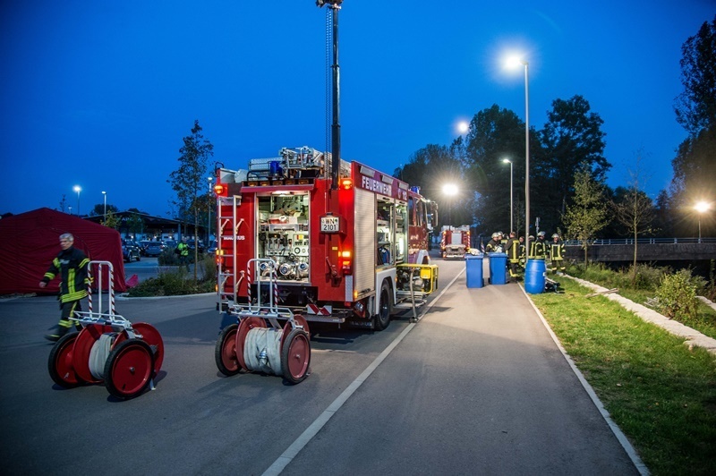 Zum Glück ist das Szenario nur eine großangelegte Übung. Unangekündigt wurden am Donnerstag 390 Einsatzkräfte mit 58 Fahrzeugen aus den Feuerwehren Alfdorf, Allmersbach im Tal, Backnang, Berglen, Burgstetten, Fellbach, Kirchberg an der Murr, Rudersberg, Waiblingen, Weissach im Tal, Welzheim und Winnenden alarmiert. Initiator war das Regierungspräsidium Stuttgart.