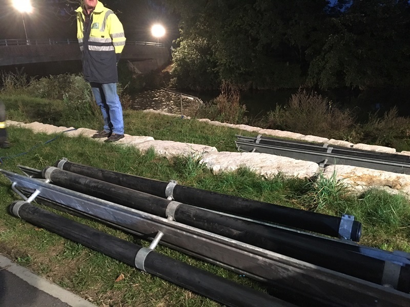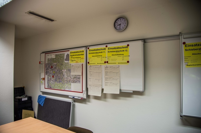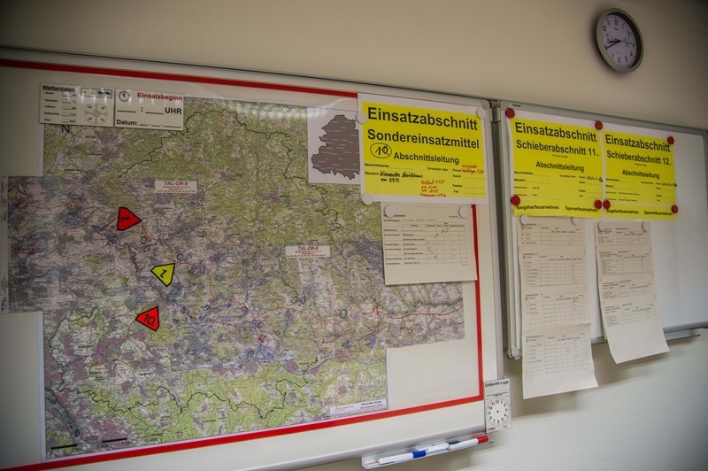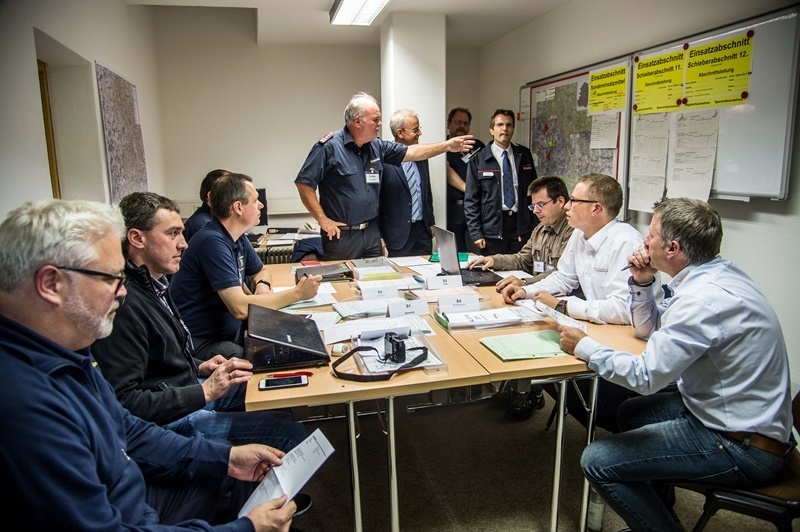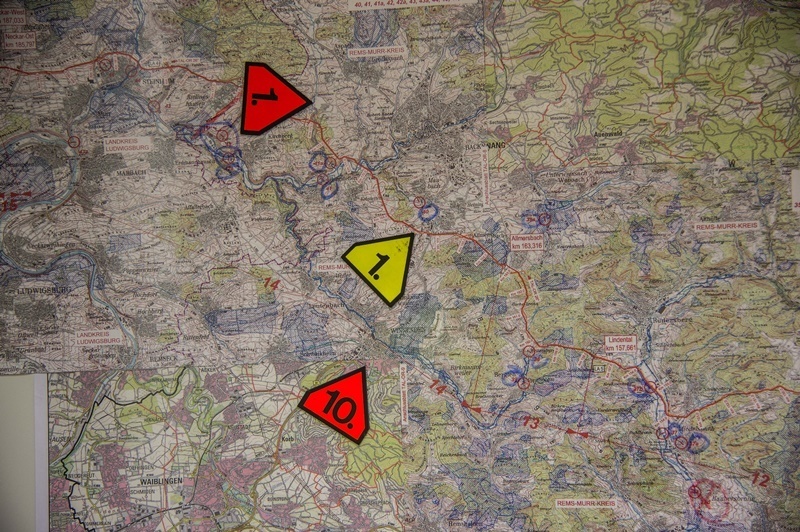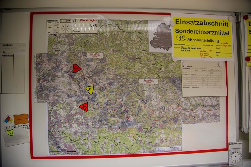 Um 17 Uhr trifft der Führungsstab im Landratsamt Waiblingen zusammen und koordiniert den Einsatz. Die Aufgaben im Fürungsstab, der sich aus Mitgliedern Freiwilliger Feuerwehren aus dem Rems-Murr-Kreis zusammensetzt, sind klar verteilt. 38 Kilometer der Pipeline müssen überprüft werden. 19 Ölsperren werden errichtet. 390 Feuerwehrmänner- und Frauen müssen 38 Kilometer der Pipeline ablaufen, um nach der Schadensstellen zu suchen und insgesamt 19 Ölsperren an Flüssen und Bächen errichten. Sie organisieren Sonderfahrzeuge und Behälter für Sonderlöschmittel für einen eventuell notwendigen Einsatz an einer Schadensstelle. Es ist genau festgelegt, welche Feuerwehr sich um welchen Abschnitt der Pipeline kümmern muss, wer wo Ölsperren anzulegen hat und dergleichen mehr.