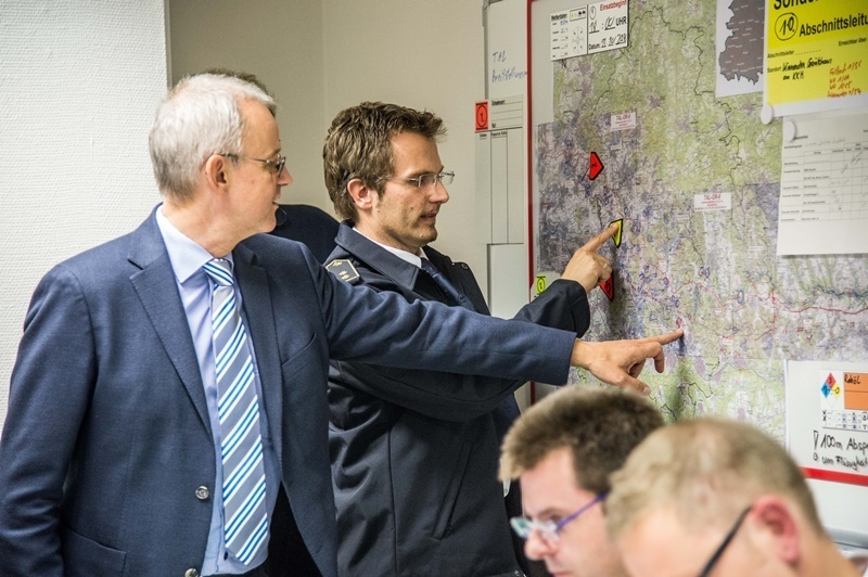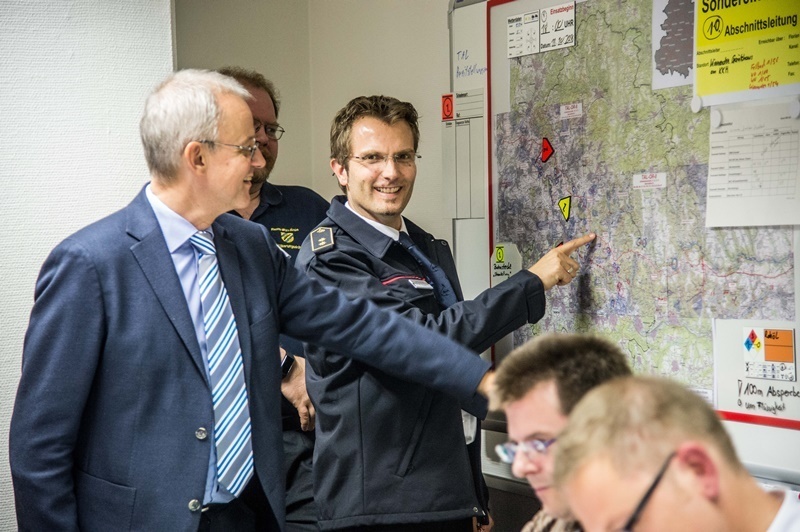 Die Zusammenarbeit klappt. Um circa 20.40 Uhr endet der Einsatz. Kreisbrandmeister René Wauro und die Regierungsvizepräsidentin Dr. Alexandra Sußmann sind zufrieden.