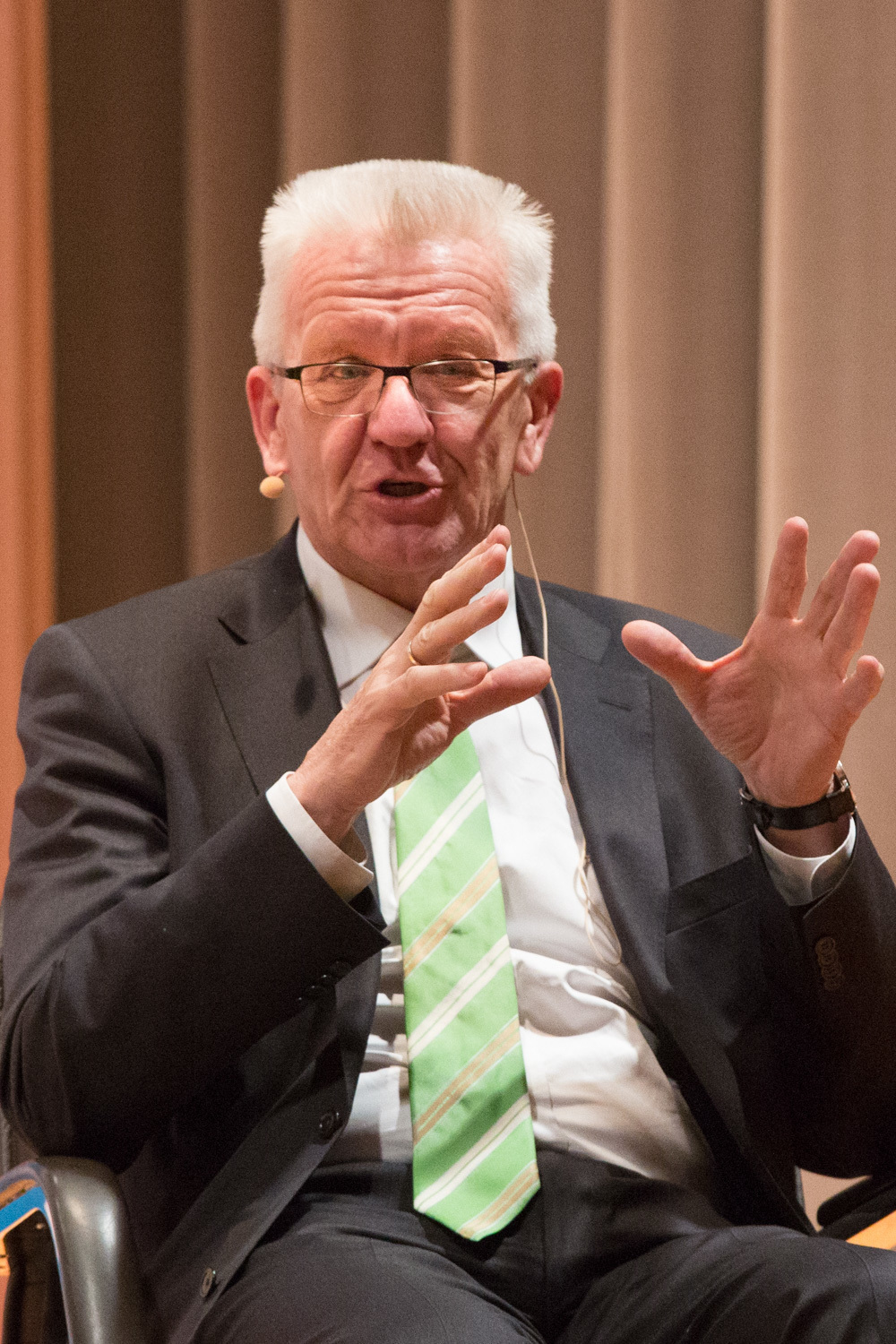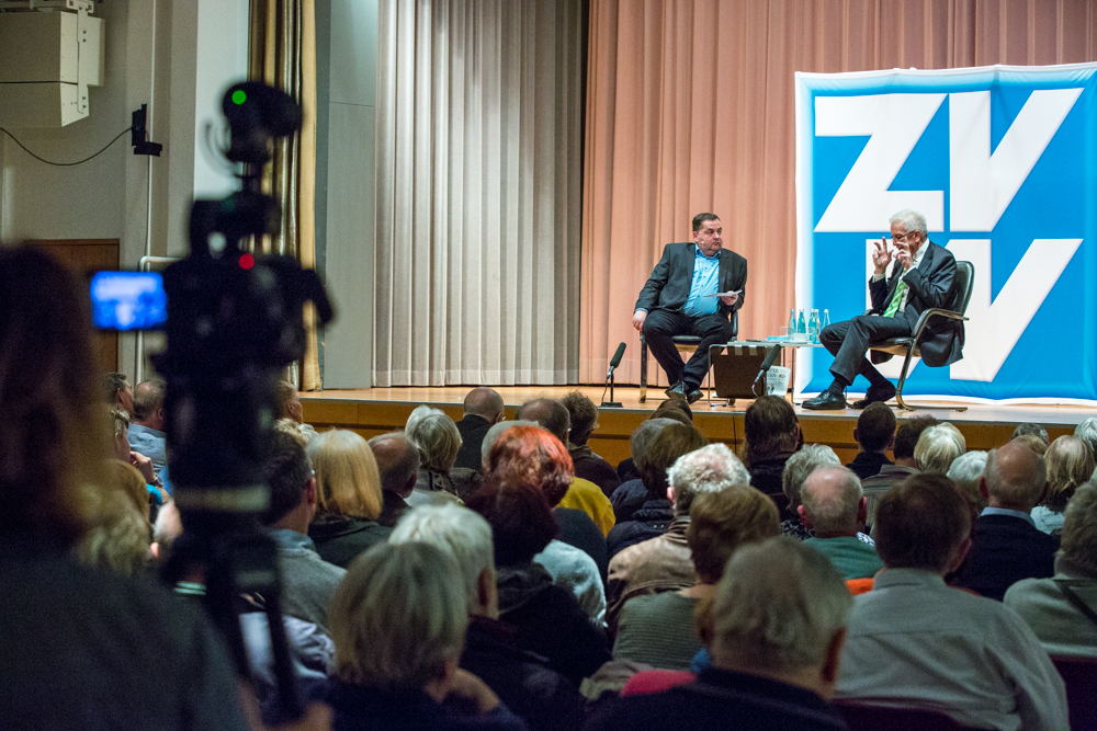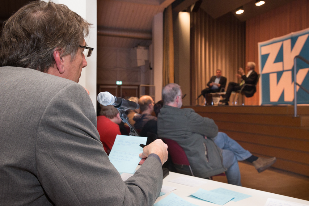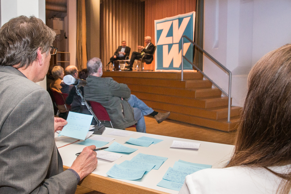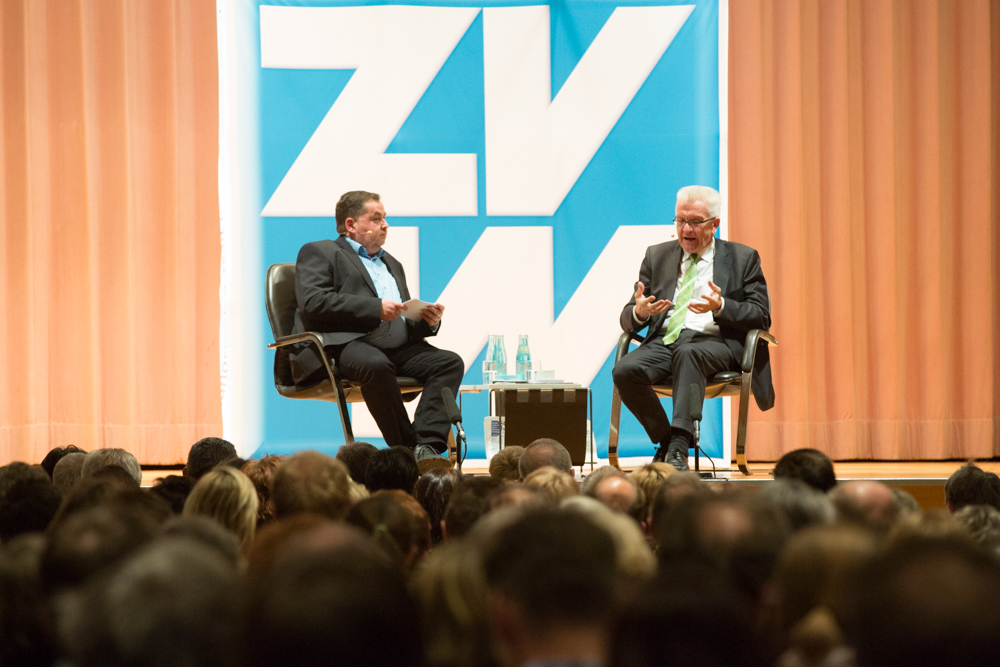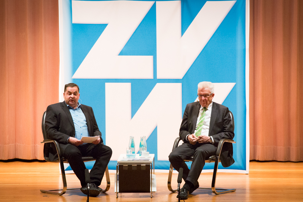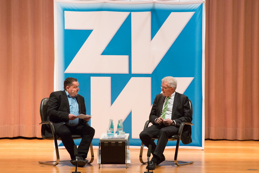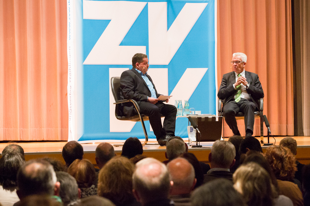 Das ganze Gespräch bekam einen philosophischen Glanz, verbunden mit der Forderung nach Menschenfreundlichkeit und einem zivilisierten Zusammenleben – begründet in Kretschmanns Bewunderung der jüdischen Philosophin und Politologin Hannah Arendt. Auf die, sagte Kretschmann, sei er gestoßen, als er sich von seiner „linksradikalen Phase“ in der Studentenzeit verabschiedet habe. Untrennbar mit dieser Gedankenwelt verbunden ist auch das, was Kretschmann trotz seiner Zugehörigkeit zu den Grünen stets den Ruf des Konservativen einbringt: „Wenn konservativ heißt, dass die Werte, die die Menschheit schon immer hochgehalten hat, auch zukünftig immer gelten, bin ich stockkonservativ.“ Diese Definition habe im Übrigen der ehemalige Ministerpräsident Stefan Mappus mal von ihm gehört und dann flüsternd gesagt: „Au, des muss i mir merken.“
