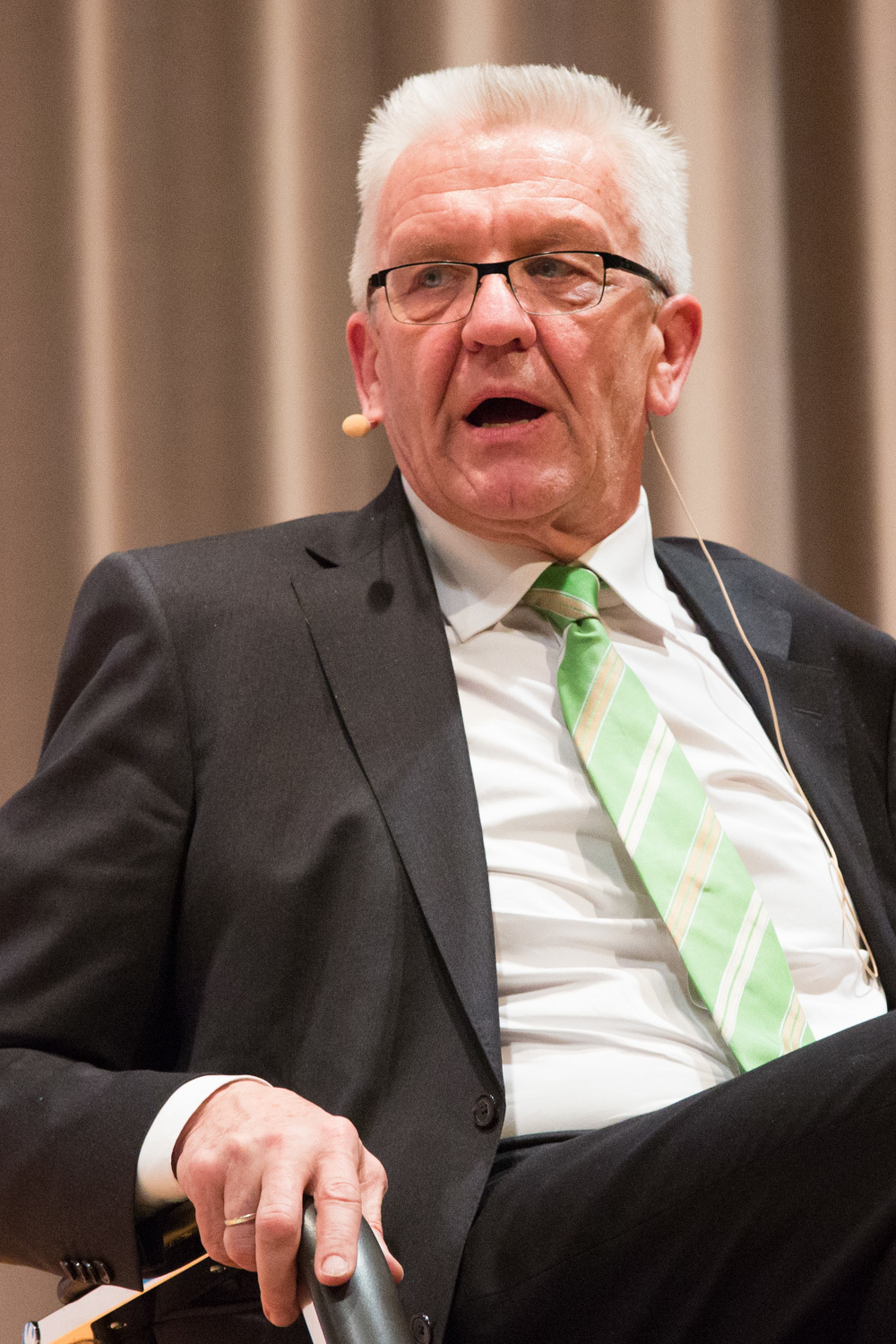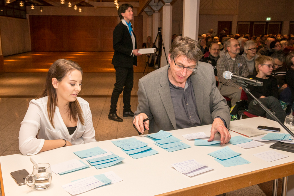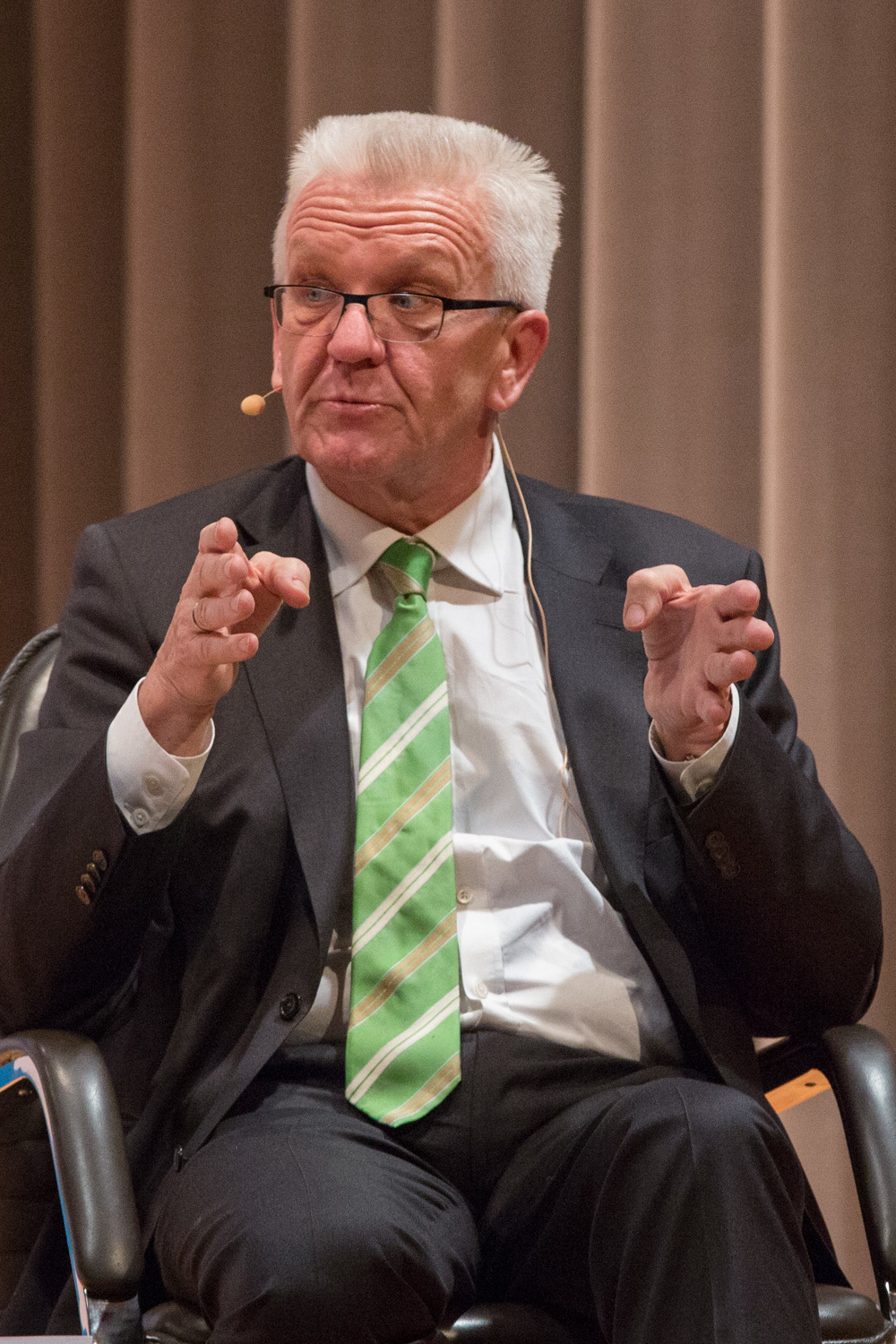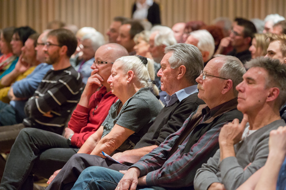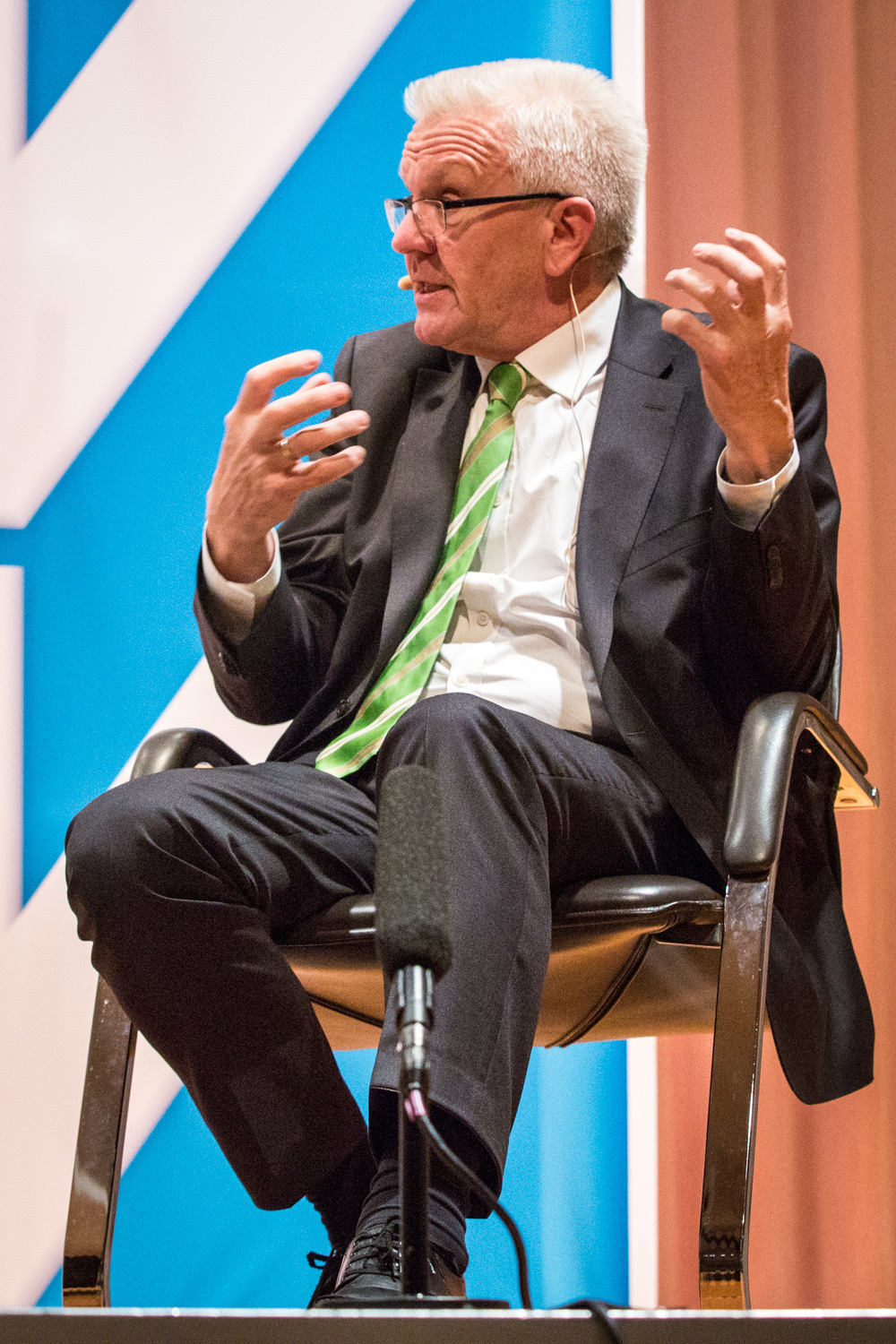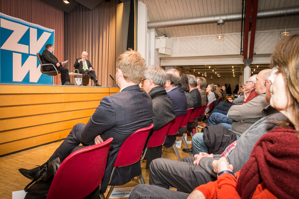 Das ganze Gespräch bekam einen philosophischen Glanz, verbunden mit der Forderung nach Menschenfreundlichkeit und einem zivilisierten Zusammenleben – begründet in Kretschmanns Bewunderung der jüdischen Philosophin und Politologin Hannah Arendt. Auf die, sagte Kretschmann, sei er gestoßen, als er sich von seiner „linksradikalen Phase“ in der Studentenzeit verabschiedet habe. Untrennbar mit dieser Gedankenwelt verbunden ist auch das, was Kretschmann trotz seiner Zugehörigkeit zu den Grünen stets den Ruf des Konservativen einbringt: „Wenn konservativ heißt, dass die Werte, die die Menschheit schon immer hochgehalten hat, auch zukünftig immer gelten, bin ich stockkonservativ.“ Diese Definition habe im Übrigen der ehemalige Ministerpräsident Stefan Mappus mal von ihm gehört und dann flüsternd gesagt: „Au, des muss i mir merken.“