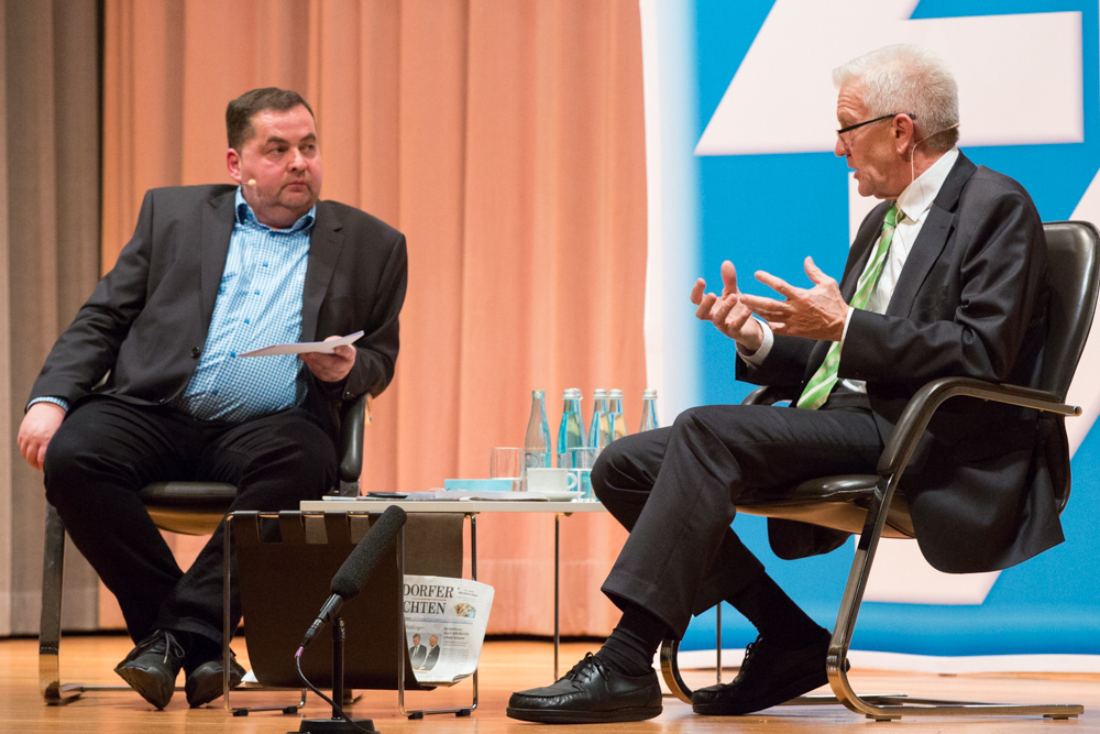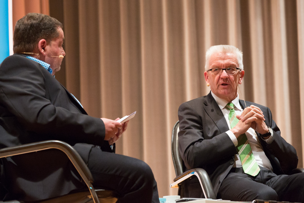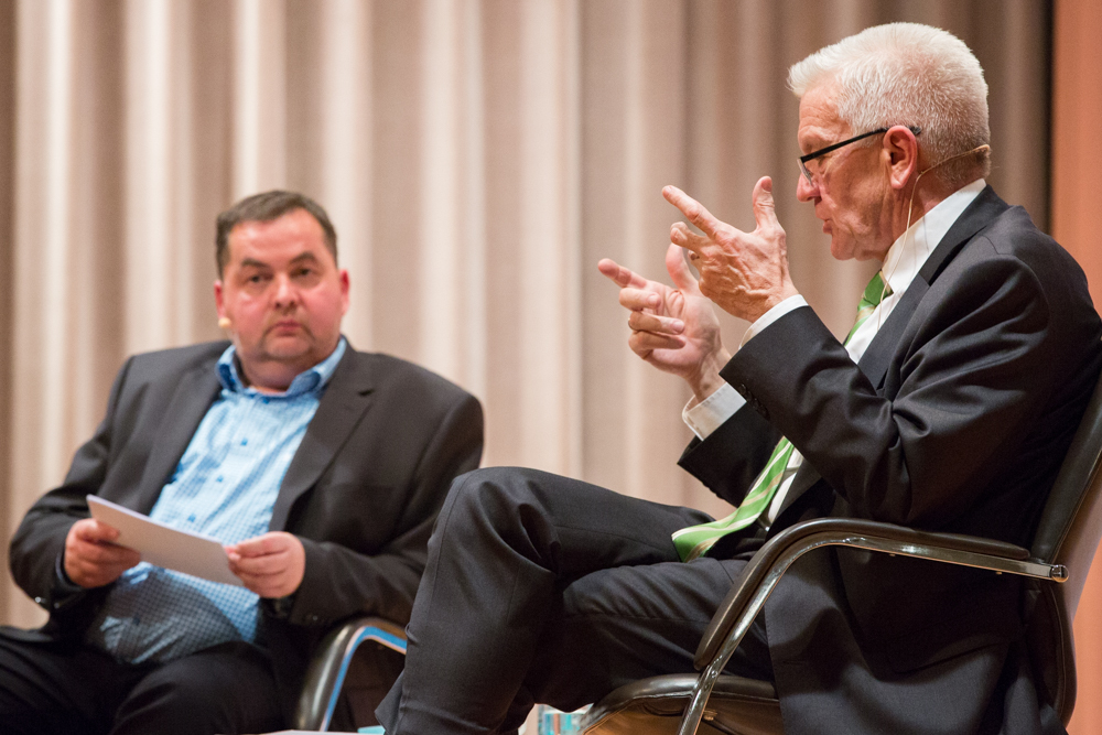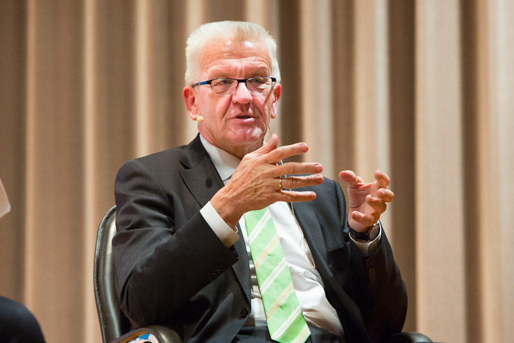 Seine Ziele für die Zukunft: Der Wirtschaftsstandort Baden-Württemberg müsse erhalten und weiterentwickelt werden. Doch die schöne Landschaft dürfe gleichzeitig nicht erdrückt werden. Wirtschaft und Forschung müssten vom Naturverbrauch entkoppelt werden. Das sei die große, grüne Aufgabe. Und letztlich gelte es, in Zeiten wie diesen die Gesellschaft zusammenzuhalten. Es gebe so viele Meinungen wie Menschen. „Wir müssen zivilisiert streiten. Zivilisiertes Streiten hält die Gesellschaft zusammen. Fanatischer Streit treibt sie auseinander.“