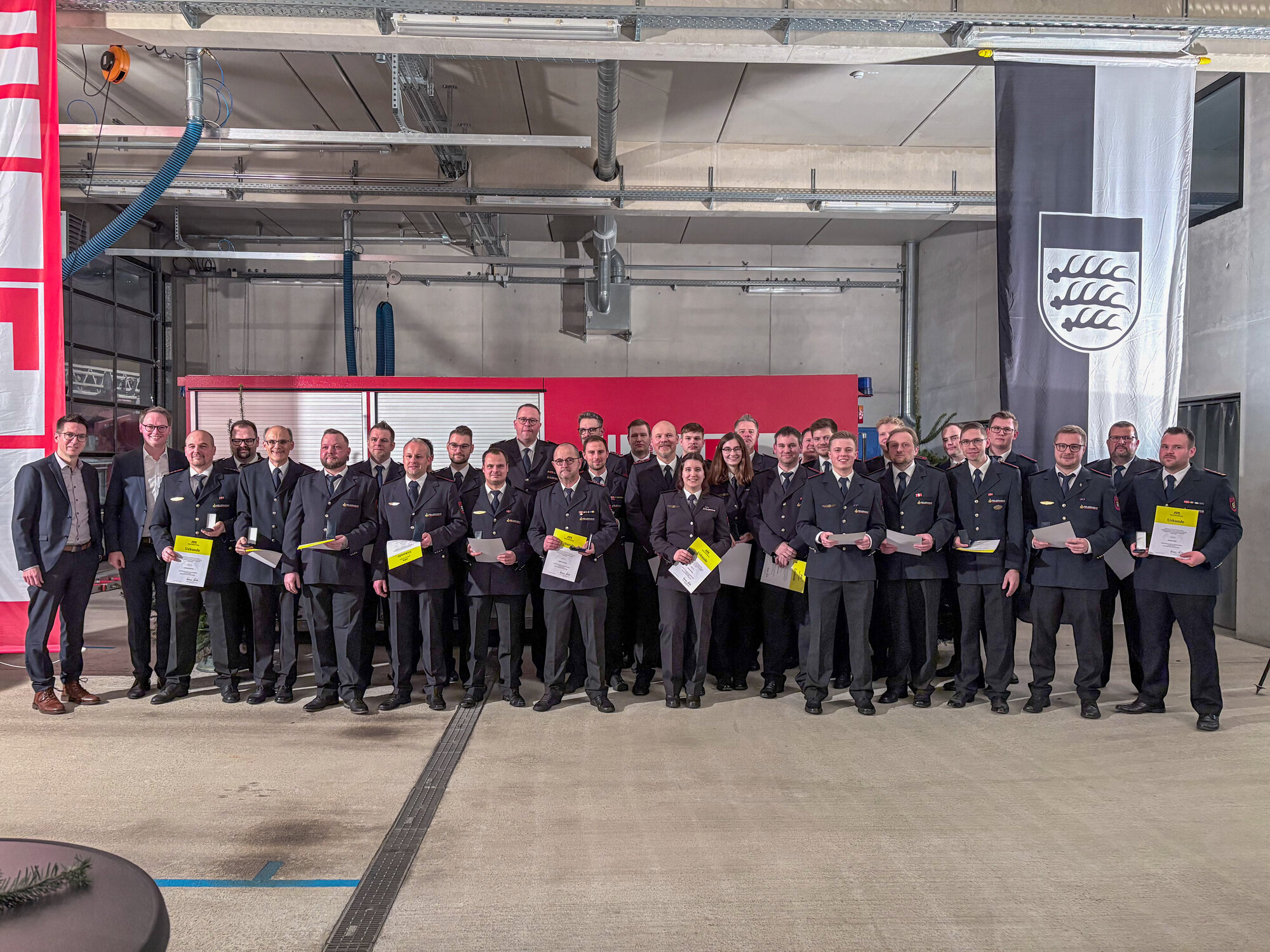 Oberbürgermeister Sebastian Wolf hat die Urkunden und Orden des Landes Baden-Württemberg an die Einsatzkräfte der Freiwilligen Feuerwehr Waiblingen überreicht. Das Land würdigt damit Personen, „die in besonderer Weise bei der Bewältigung des