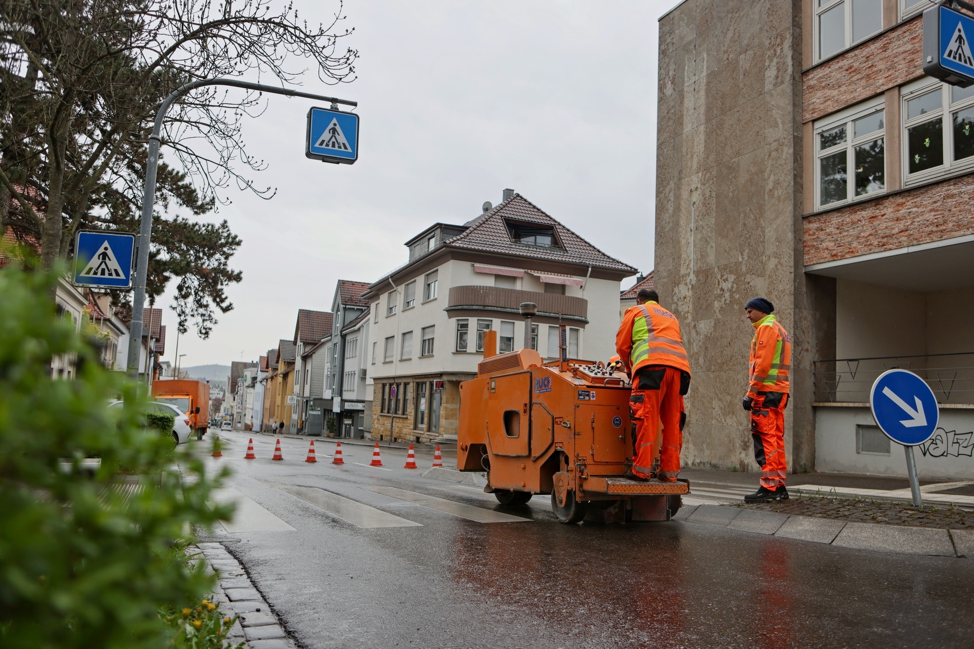 Waiblingen. In der Bahnhofstraße in Waiblingen läuft in den kommenden Monaten ein kleines Experiment: Das Verkehrsministerium des Landes testet an zwei Zebrastreifen neue Farbmarkierungen mit „hochreflektierenden Glasperlen“ - sie sollen Auto- und Busreifen länger standhalten als die bisherigen Varianten. Am Sonntag haben Bauarbeiter die Markierungen beim Kino „Traumpalast“ und auf Höhe der Unteren Lindenstraße angebracht.