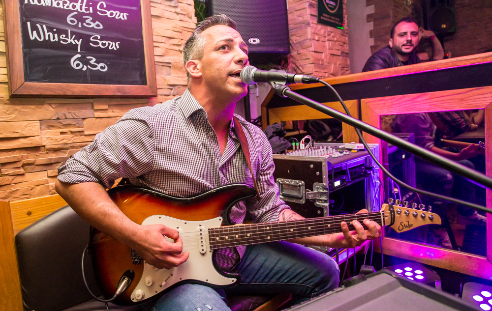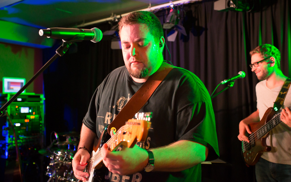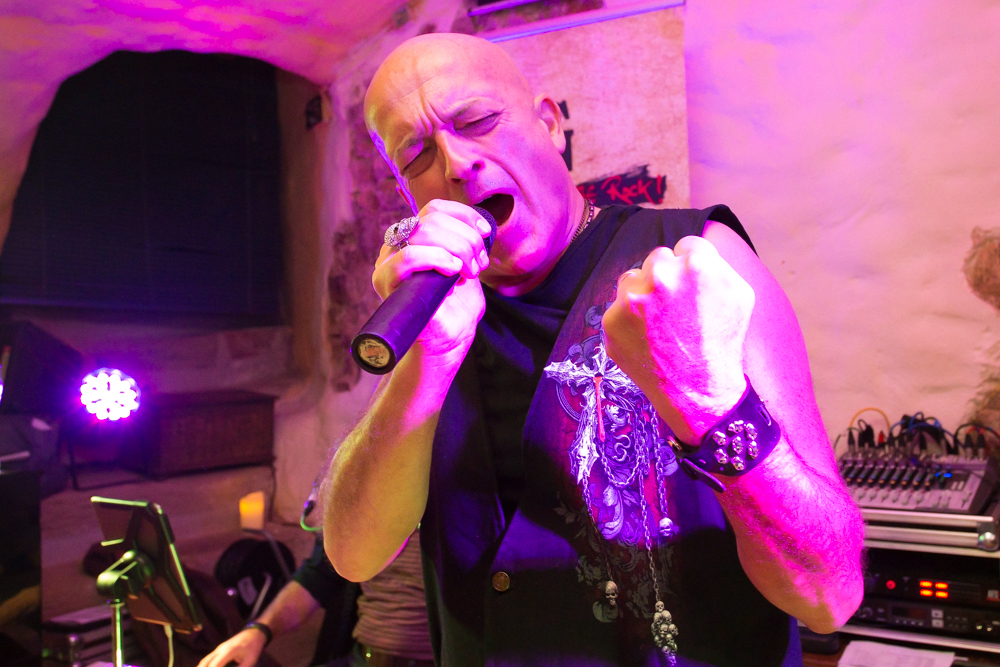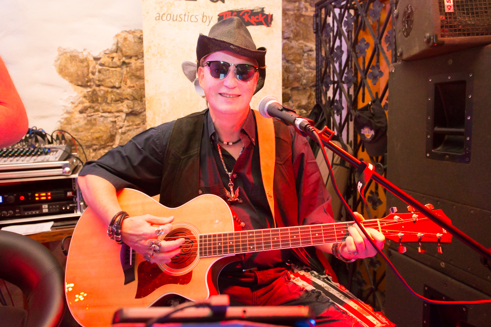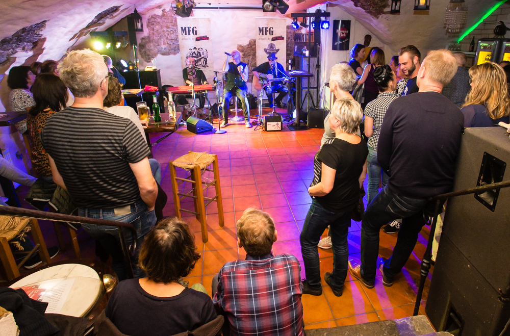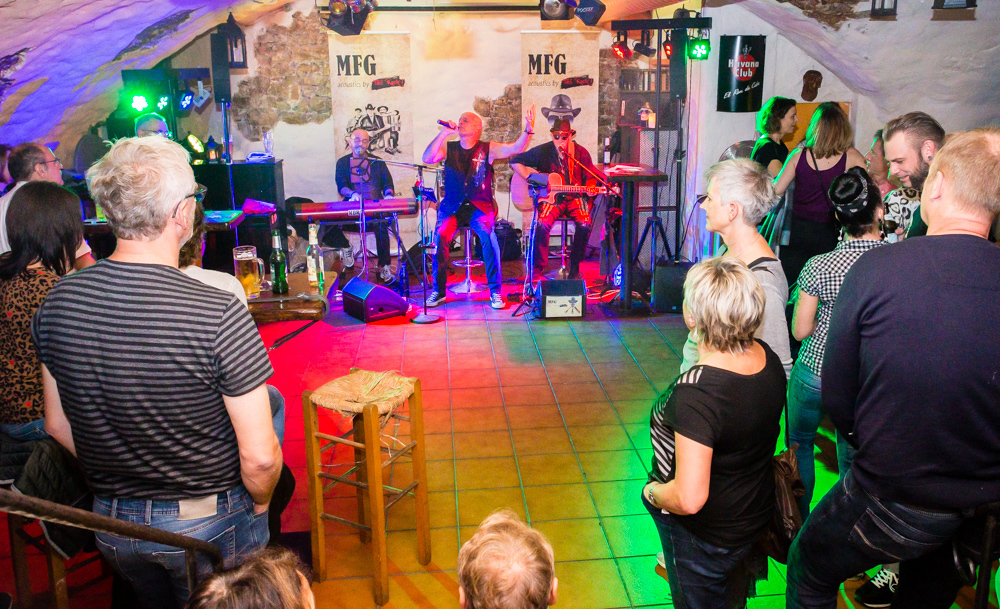 Mit jeder Kneipe weiter in die Altstadt hinein wird’s grooviger und rockiger. In der Brasserie Sonne sind die Örtlichkeiten für zwei Bands gegeben und das wird gern genutzt: Im Gewölbekeller spielt MFG (Metzger, Fuhrmann, Golzem), die abgespeckte Version von „The Rock“. Eine Akustikformation der Waiblinger Hardrockband „The Rock“. Ein Kind, das eher aus der Not geboren wurde, erklärt Leadsänger Martin Metzger, denn zu den Freitagsproben war der Schlagzeuger, ein Feuerwehrmann, oft verhindert.