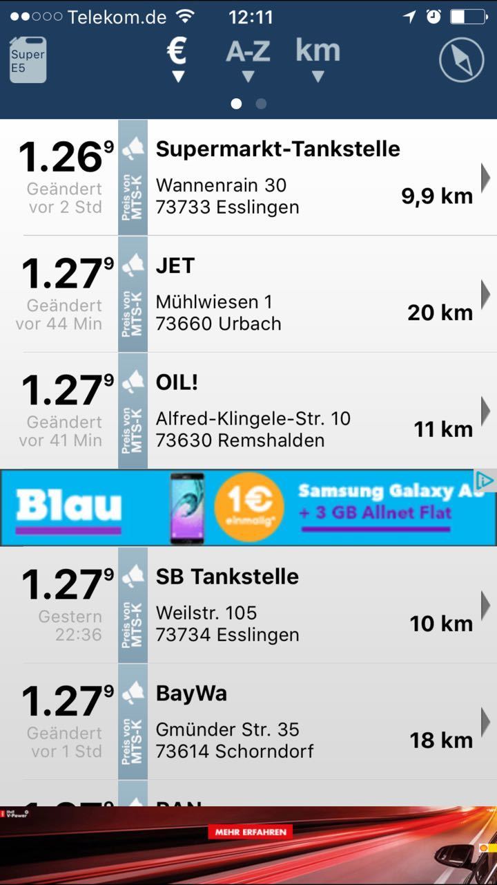 - keine Push-Benachrichtigungen; unübersichtlich wenn mehrere Spritsorten angezeigt werden