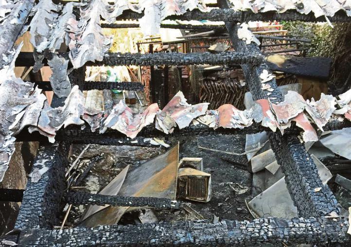 Deformiertes Blech, etwas, das nach einem verschmorten Kühlaggregat aussieht, verkohlte Balken und Dämmplatten, ein halb zerbröckeltes Dach und über allem eine dicke Schicht Asche – viel hat sich nicht getan seit dem Brand, der vor knapp zwei Wochen den als Abstellraum und Kühlzelle genutzten Schuppen des Restaurants Ochsen zerstört hat. Viel zu wenig, sagen die Anwohner. Denn bei dem Dach handelt es sich um ein altes Wellendach, aus einem Asbest-Beton-Gemisch.