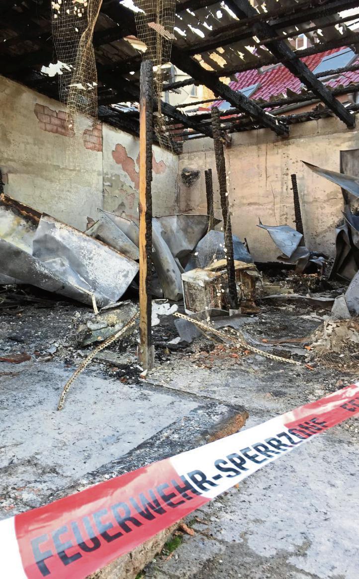 Es bestehe dennoch kein Grund zur Sorge: Der gesetzlich vorgeschriebene Grenzwert von 500 Fasern pro Kubikmeter werde sicherlich nicht überschritten. „Da ist die Belastung im öffentlichen Raum, beispielsweise unter alten Bahnhofsdächern, höher“, so der Fachmann. Die hohe Temperatur des Feuers war wohl auch die Ursache für das explosionsartige Zerspringen des Daches. „Da die Wellplatten an den Trägerbalken festgeschraubt waren, konnten sie sich nicht ausdehnen und sind quasi explodiert“, erläutert Flohr. Das erkläre auch den lauten Knall, den Anwohner in der Nacht wahrgenommen haben. Die Brandruine soll nun so bald wie möglich abgebrochen werden. „Das liegt in der Verantwortung des Eigentümers, wir sind nur für die ersten Sicherungsmaßnahmen zuständig“, betont Flohr.