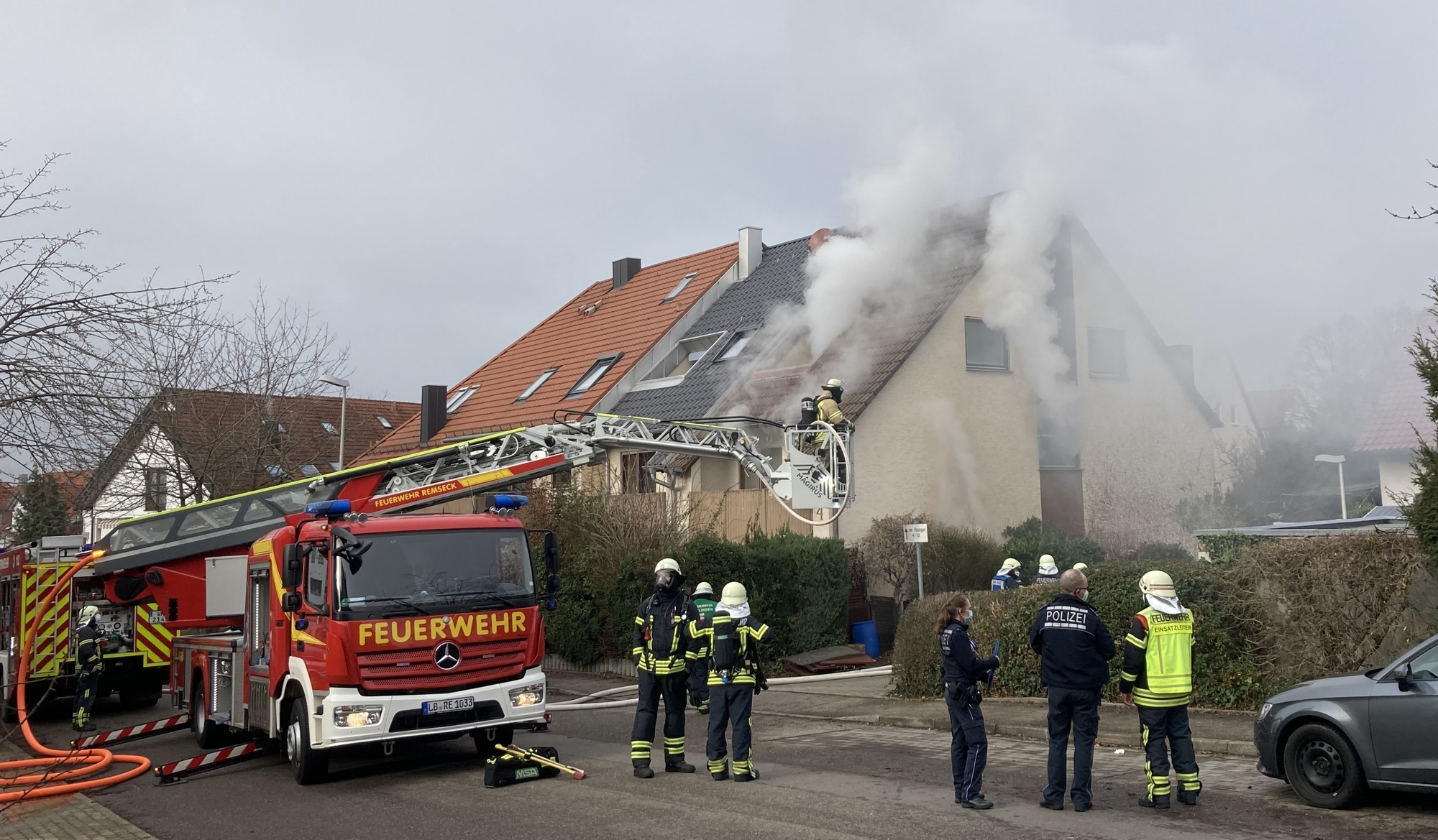 Im Keller eines Reiheneckhauses in der Straße Im Raisger hat es am Dienstag in Hohenacker gebrannt. Durch die offene Bauweise verteilte sich der Rauch im kompletten Gebäude, so dass Rauchschwaden selbst aus den Dachfenstern gen Himmel stiegen. Über die exakte Höhe des Sachschadens konnte die Polizei am Dienstag noch keine genauen Angaben machen. Sie gehe aber laut Pressemitteilung nach ersten Erkenntnissen von einem Schaden im sechsstelligen Bereich aus.