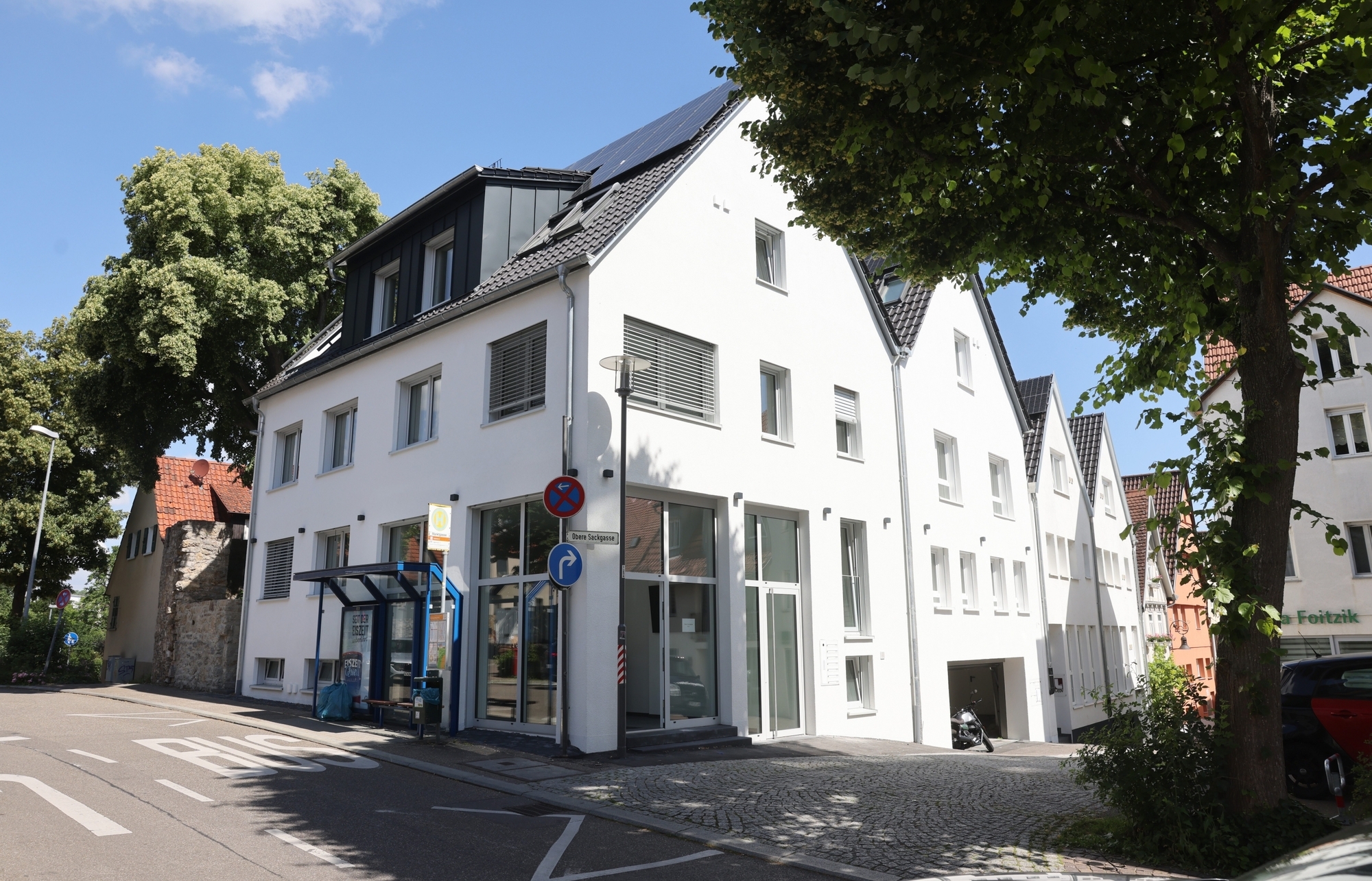 Darauf haben die Bauherren lange gewartet: An diesem Dienstag wird in der Oberen Sackgasse 9 in Waiblingen Einweihung gefeiert. Direkt gegenüber der Marktgarage ist aus einem heruntergekommenen Altbau ein Büro- und Wohnhaus geworden, das wenig Energie verbraucht und sogar einen kleinen Garten bietet, wo man zwischen Resten eines Wehrturms und der historischen Stadtmauer Kaffeepause machen kann. Das „Workingspace“-Konzept wurde abgespeckt, größter Mieter ist nun die Messe-Firma