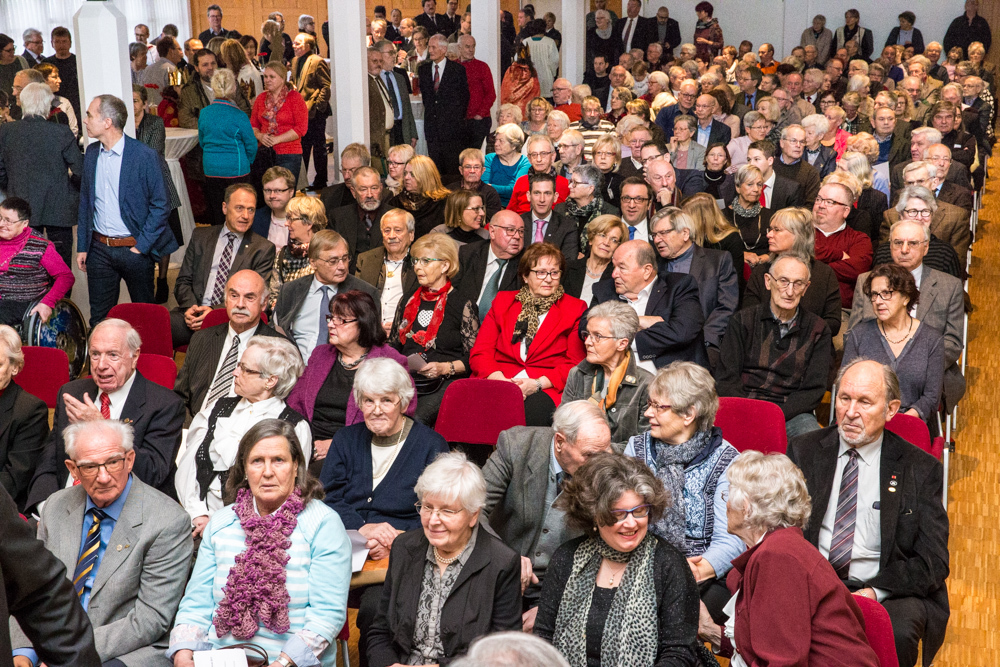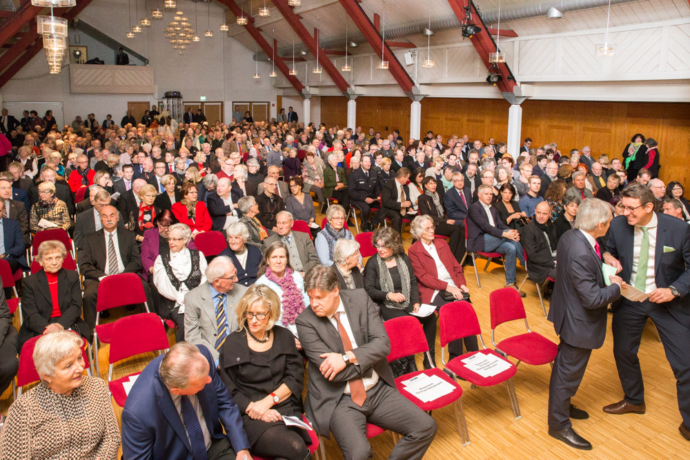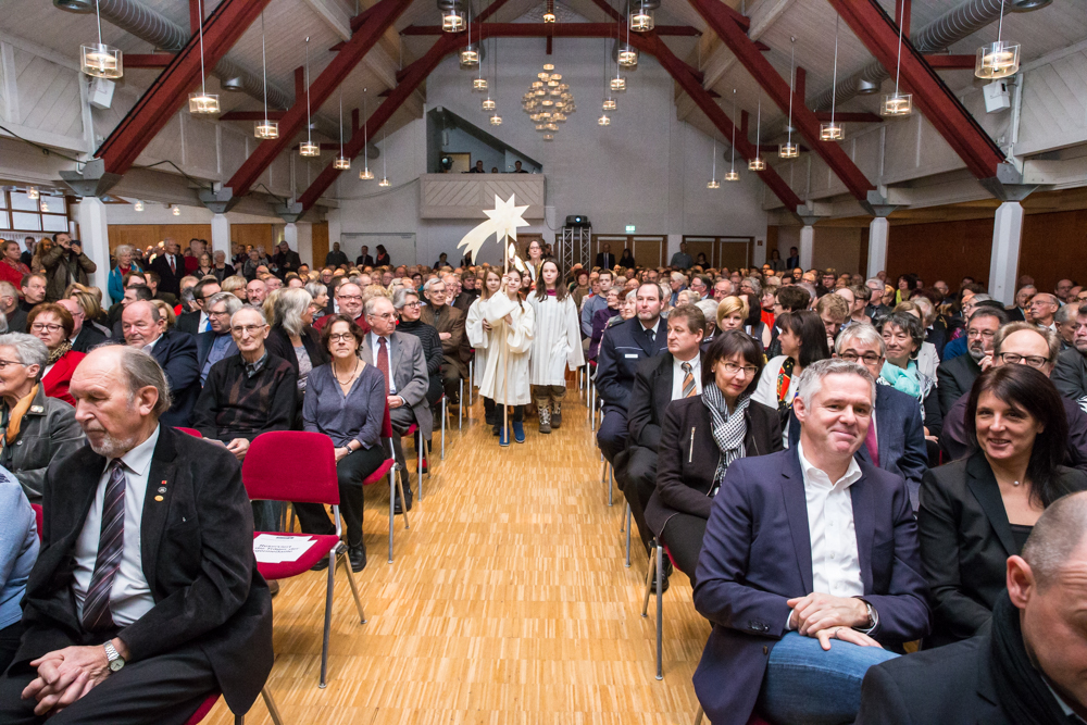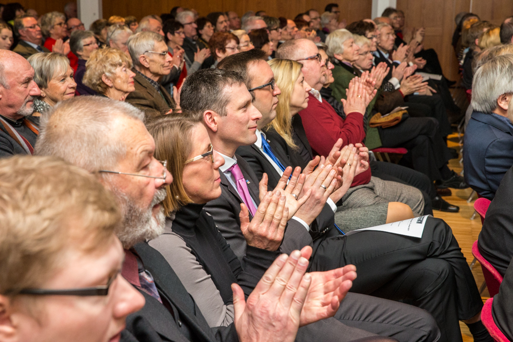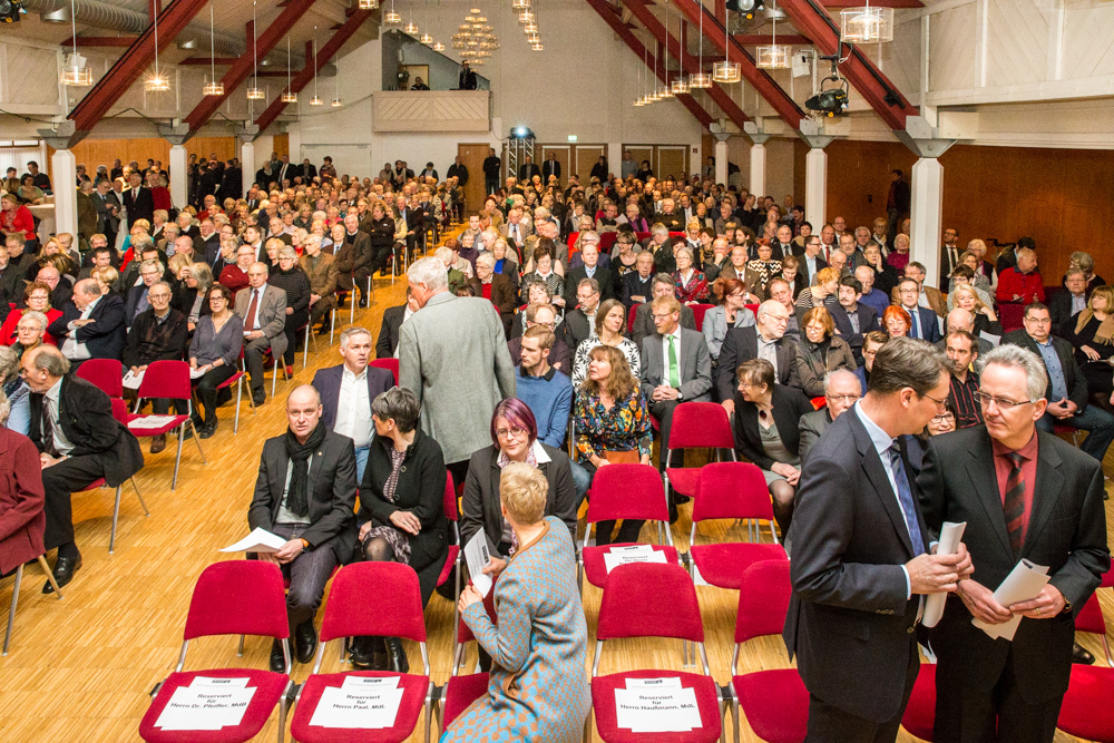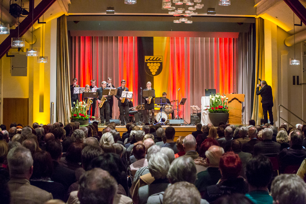 Mit Spannung erwartet wurden die Aussagen und Jahresausblicke des neuen Weinstädter Oberbürgermeisters Michael Scharmann. Rund 500 Zuhörer waren der Einladung in die Jahnhalle gefolgt, so dass sogar alle zusätzlich aufgestellten Stehtische belegt waren. Das zurückliegende Jahr mit der Wahl des neuen Oberbürgermeisters sei für Weinstadt und für ihn persönlich „ein Highlight“ gewesen, stieg er in seine erste Neujahrsansprache ein. Diese nahm neben Rückblicken auf Erreichtes und einem Ausblick auf das begonnene Jahr auch die in zwei Jahren geplante Remstal-Gartenschau in den Blick. Sie müsse in Weinstadt ein Gesicht erhalten, so Scharmann. Die Projekte nannte er ambitioniert. Weinstadt werde die einmalige Chance nutzen, um die Lebens- und Aufenthaltsqualität und dadurch zahlreiche Standortvorteile dauerhaft zu erhöhen.
