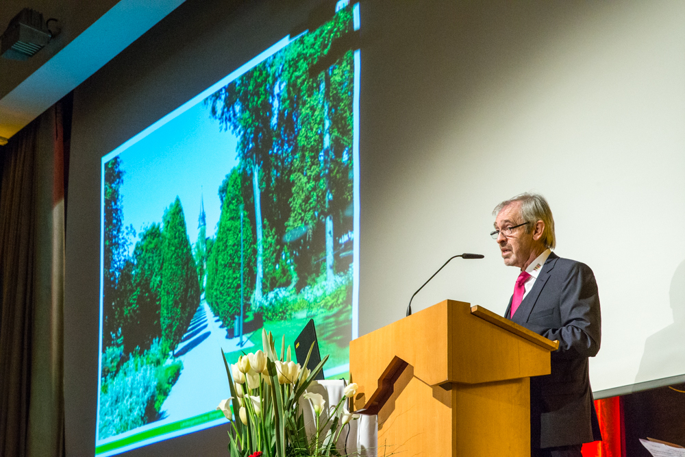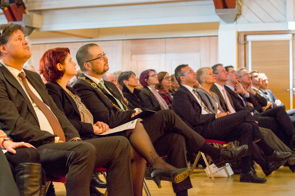 In Öhringen hätten viele mitgeholfen, dasselbe wünscht sich OB Scharmann. Neben der baulichen Ausgestaltung der Flächen gehe es jetzt um die Einbindung des ehrenamtlichen Engagements, um die Suche nach Partnerschaften, Unterstützern und Sponsoren, unterstrich er. Der Boden sei bereitet für eine erfolgreiche Gartenschau. „Doch ein guter Boden allein macht noch keine Ernte. Es braucht Samen, Setzlinge, Dünger, und vor allen Dingen viele helfende Hände für einen reichen Ertrag.“ Bei den Bürgerbeteiligungsrunden des Weinstädter Ideen-Gartens hätten sich viele Gärtner mit Ideen und Angeboten eingebracht, die von der Stadt in einen Plan gegossen würden, so der OB, dessen Rede ein Gedanke von Mildred Scheel durchzog. „Es sind nicht immer die großen Worte, die in der Gemeinschaft Grundsätzliches bewegen: Es sind die vielen kleinen Taten der Einzelnen“, sagte die Ärztin und Frau des im zurückliegenden Jahr verstorbenen ehemaligen Bundespräsidenten Walter Scheel. „Lassen Sie uns gemeinsam viele kleine Dinge tun, die zusammen ein großes Gutes ergeben“, besann sich der neue Oberbürgermeister auf bürgerliche Tugenden in einer Gemeinschaft. „Wenn jeder von uns in seinem direkten Lebensumfeld Gutes tut, verbessern wir damit die Lebensqualität für alle.“