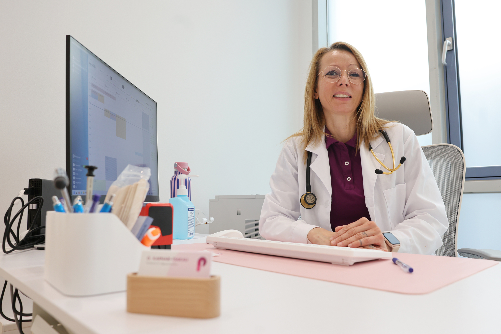 Modern präsentiert sich die neue Hausarztpraxis. Passend dazu gibt Olga Kanari-Tsakali zu verstehen: „Wir arbeiten komplett papierlos - bis