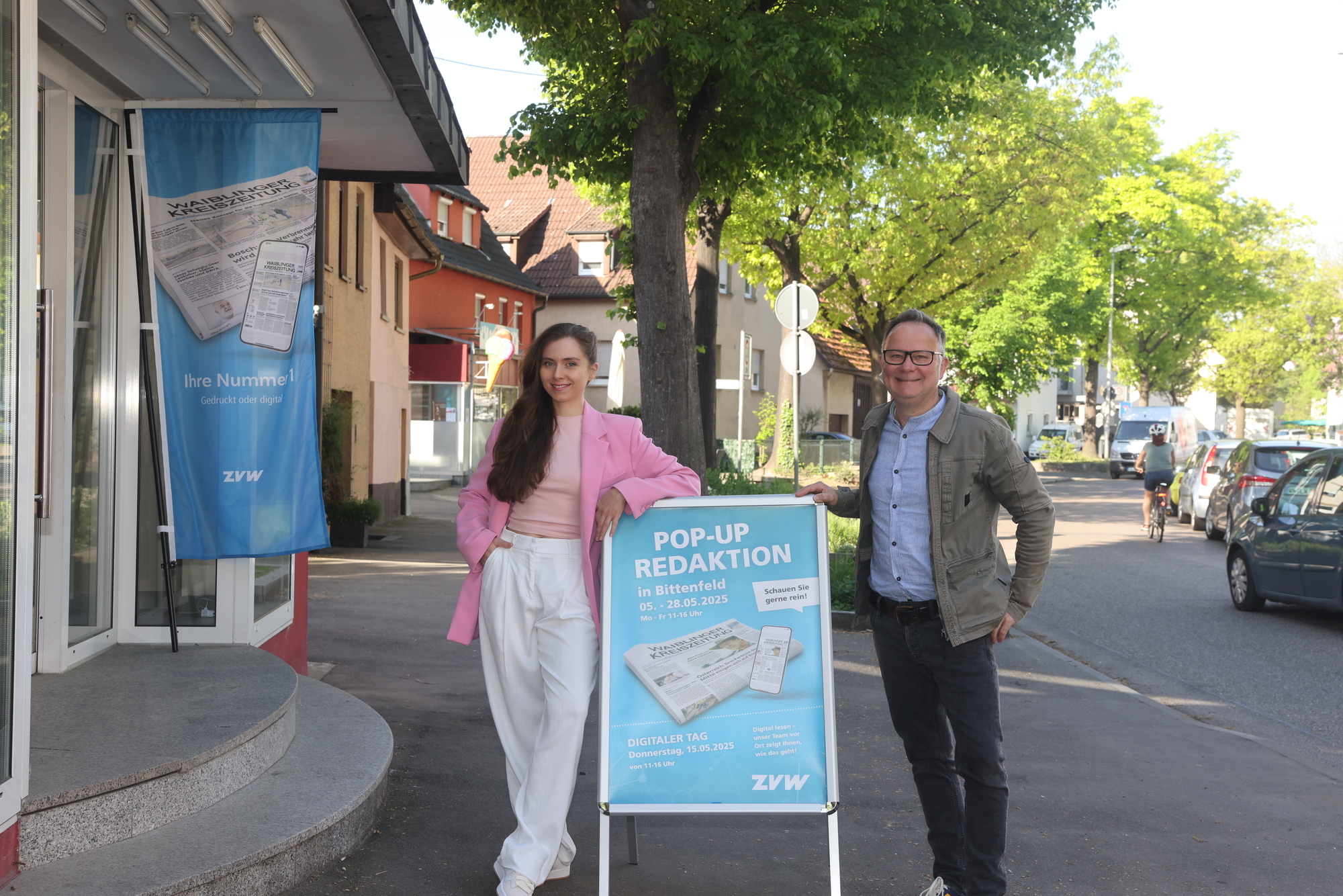 Natürlich gibt es auch spannende Einblicke in die Arbeit der Journalisten: Wie entsteht eine Lokalnachricht? Und warum ist der Blick auf die kleinen Dinge oft so entscheidend? Nicht nur unsere Redakteurinnen und Redakteure sind vor Ort – auch das Team aus dem Marketing ist mit dabei. Sie informieren Sie gerne über unsere aktuellen Abo-Angebote und helfen Ihnen dabei, ganz einfach von der Papierzeitung aufs E-Paper umzusteigen. Ein besonderes Highlight erwartet Sie in unserer Pop-Up-Redaktion in Bittenfeld am Donnerstag, 15. Mai. Dann dreht sich alles um die digitale Welt des Lesens. Beim Digitaltag zeigen wir Ihnen, wie einfach und komfortabel das E-Paper des Zeitungsverlags Waiblingen funktioniert – live vor Ort und zum Ausprobieren.