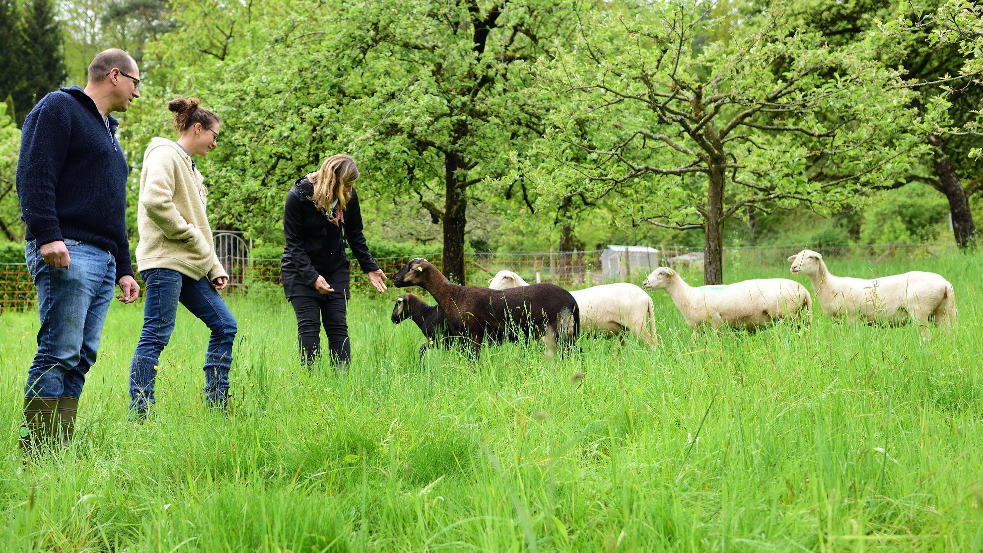 Für den Landschaftserhaltungsverband ist es ein Vorzeigeprojekt. Zu Beginn war das Streuobstgebiet zu über 50 Prozent verbuscht, so dass sich in dem waldnahen Dickicht auch Wildschweine einnisteten. Ferner waren gut die Hälfte der Bäume nicht mehr gepflegt. Die ökologische Bewirtschaftung werde den Artenreichtum auf der Hangfläche wieder stärken, sind sich Kindermann und Blümle sicher. Vielfalt bei den Vogelarten bedeute, dass auf den freigelegten Baumwiesen wieder Lebensraum für Grünspecht, Kohlmeise, Blaumeise, Buchfink und Halsbandschnäpper geschaffen wird. Beweidung stelle eine artenreiche Blumenwiese sicher, sagt Blümle. „Dann wachsen da Margretla, Salbei, Glockenblumen, Hasenfuß. Auch Glatthafer wäre gut.“ Jedenfalls sei, solange die kleine Schafherde unterwegs ist, mit Wildschweinen nicht mehr zu rechnen. Den Rohhumus mit seiner von Wildschweinen so begehrten Vielzahl an Insekten, eine Folge der Verbuschung, gibt es jetzt praktisch nicht mehr.