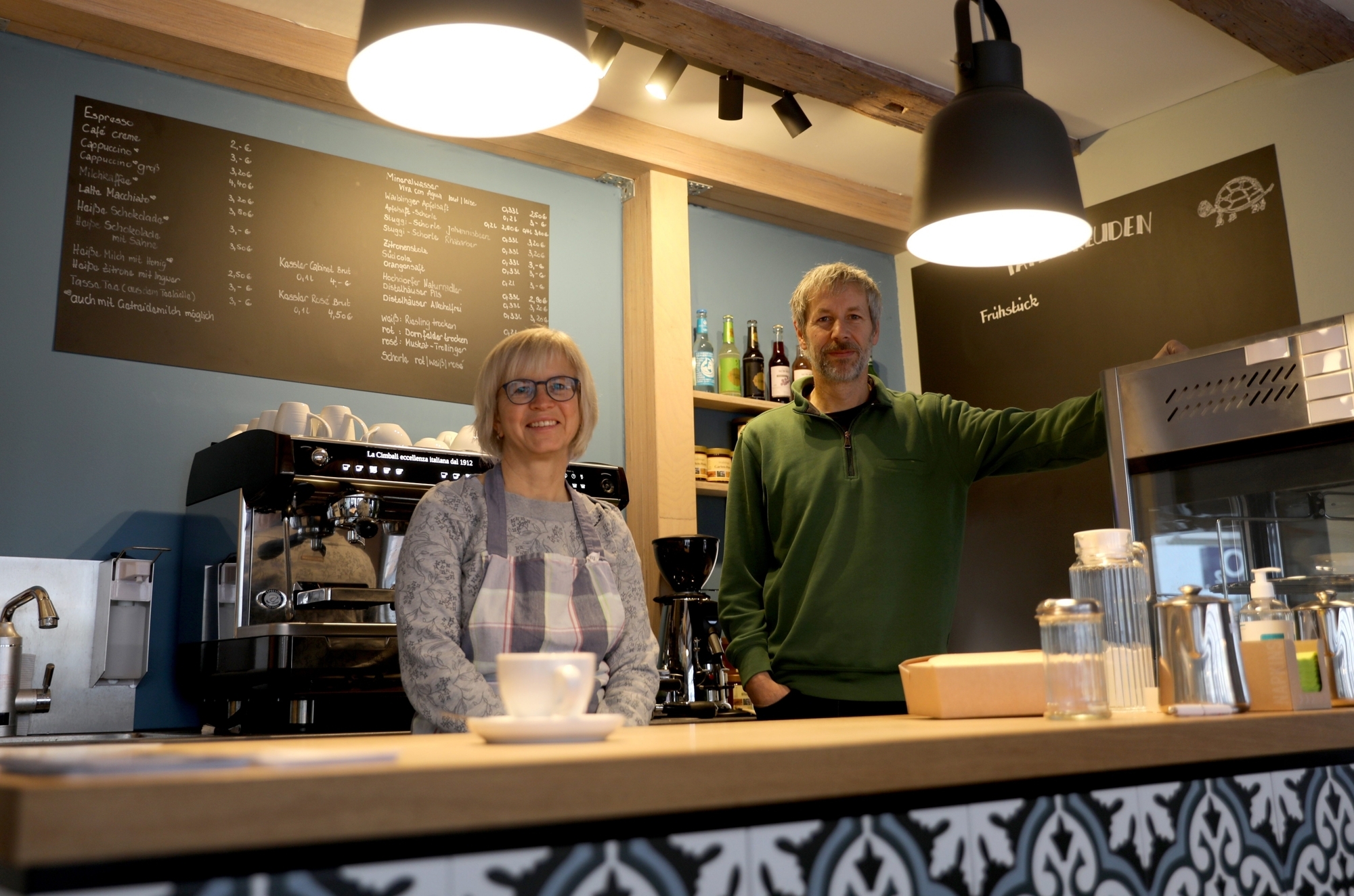 Früher war’s Mode Scala, dann ein Maklerbüro. Zuletzt stand das Doppelhaus in der Langen Straße mit den Nummern 53 und 55 trotz bester Lage in der Fußgängerzone leer. Nun hat das Waiblinger Ehepaar Nuding-Rieger dem Gebäude neues Leben eingehaucht. Nun steigt die Aufregung, denn am Donnerstag, 25. November, eröffnet das neue Café Quintus endlich. Eine niedliche Schildkröte ziert das Logo. Das echte Haustier, das mit seinem Namen Pate steht für die Neueröffnung, befindet sich derweil ganz