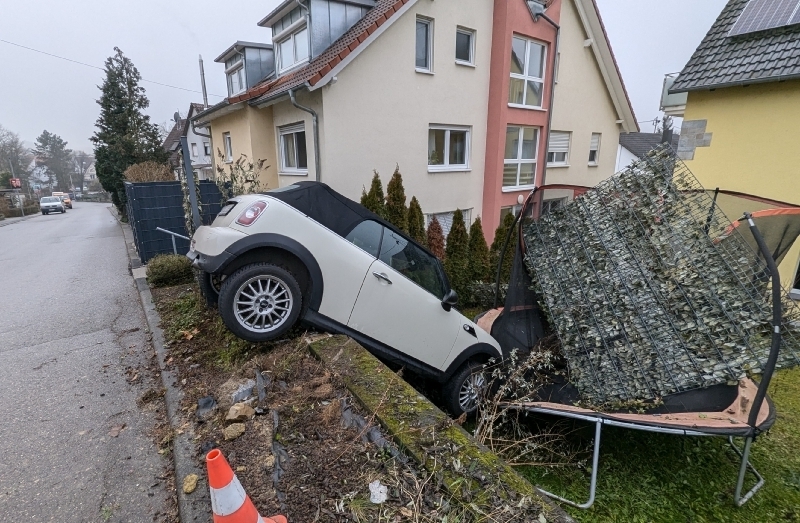 Ein Auto im Vorgarten zu haben passiert nicht alle Tage, doch genau das hat sich am Mittwoch, 15. Januar, bei Familie Deisenhofer in Bittenfeld zugetragen. Der Morgen war eisig, die Straßen glatt und wer Auto fuhr, musste besonders vorsichtig sein. „Es war genau um 7 Uhr“, erinnert sich Sandra Deisenhofer. „Erst war ein lautes Hupen zu hören, mehrere Male, dann ein Schreien und dann ein Knall.“