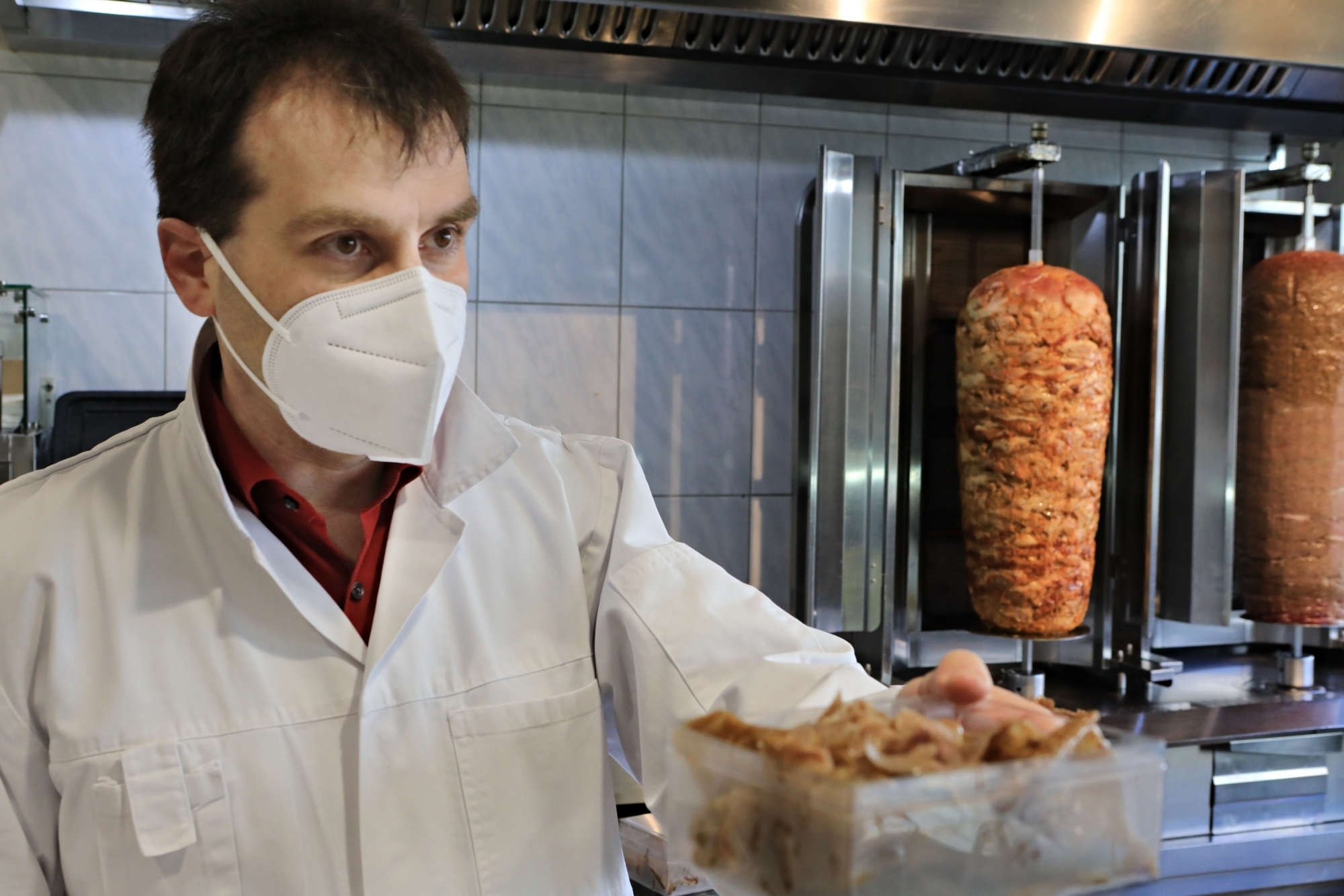 Peter Herrschlein holt zwei in Plastik verpackte Kunststoffbehälter aus seiner Tasche. „Hier hätte ich gerne zweimal 250 Gramm!“, sagt er dem Inhaber eines Schnellimbiss-Restaurants in der Waiblinger Bahnhofstraße, das seinen Kunden Fleisch vom Drehspieß, umgangssprachlich auch als Döner bekannt, sowie Pizza, Pommes oder Salate anbietet. Die beiden Boxen sind steril verpackt. Peter Herrschlein ist Lebensmittelkontrolleur und arbeitet im kreisweiten Veterinäramt und Amt für