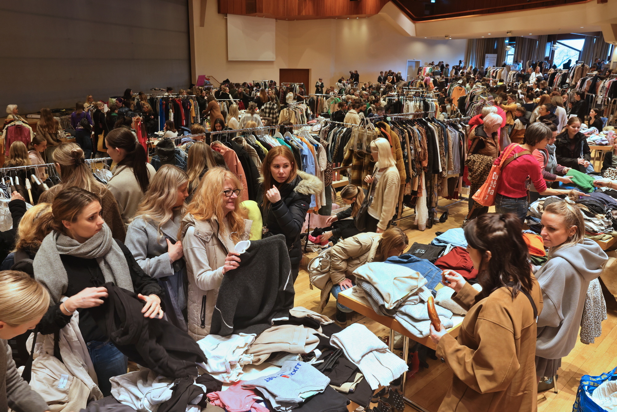 Waiblingen. Eine lange Schlange bildet sich vor dem Bürgerzentrum in Waiblingen. Beim Mädchenmode-Flohmarkt herrschte wieder reges Treiben und Handeln. Für unzählige weibliche Fashionfans und Modeentdecker im Alter von Teenie bis Seniorin ist das Shoppingparadies eine attraktive Fundgrube.