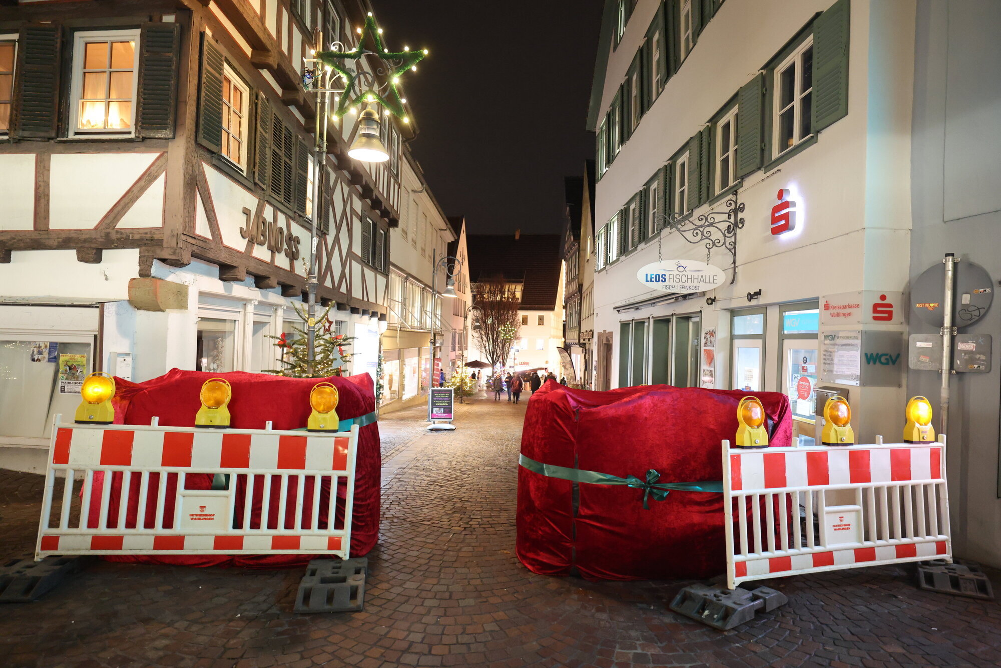 Waiblingen. Weihnachtsmärkte brauchen Schutz vor Amokfahrten und Terror, das haben die vergangenen Jahre leider gezeigt. Auch kleinere Städte müssen sich anpassen. So auch Waiblingen. Für den Weihnachtsmarkt 2025 gibt es erstmals Sperrelemente, um den Bereich um den Weihnachtsmarkt in der Innenstadt gegen Fahrzeuge zu sichern. Dabei handelt es sich um sieben mobile Sicherheitselemente. Manche sind sogar in Rot „verpackt“ wie ein Weihnachtsgeschenk.