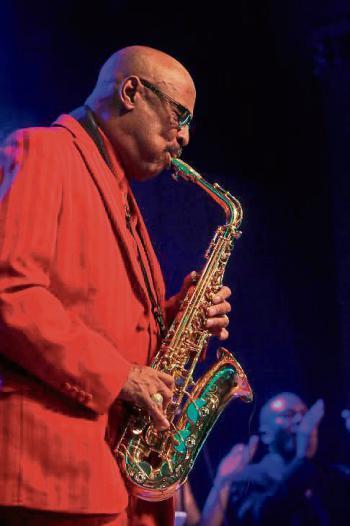Nobel nicht etwa, weil der Saxofon-Sir unter einem etwas martialisch wirkenden Ledermantel, wie ihn auch ein Jedi-Ritter hätte tragen können, einen roten Anzug zu roten Stiefeln versteckte. Oder weil überall in der Halle Schriftzeichen darauf hinwiesen, dass Sir Waldo 15 Jahre lang James Browns Begleitband angehörte, somit zur absoluten Soul-Elite zählt. Nobel insofern, als der in den US-Südstaaten geborene Waldo Weathers, erster schwarzer Saxofon-Spieler in der Country Music Hall Of Fame, sich in Weinstadt mit einer ausgesucht vornehmen Tafelrunde exquisiter Begleitmusiker umgab. Unter anderem gehörte ein weiteres Blaublut seiner Band an, der Keyboarder Marquis De Shoelch, des Weiteren vier überaus fähige Sänger, darunter David Hanselmann, in der Region seit den 70ern der Soul-Spezialist überhaupt, oder der hervorragende Bassist Andrew Lauer, dessen Flinkfinger-Solos auch die Klientel des Jazzclubs Armer Konrad begeistern konnte, die beim Vorprogramm mit dem Sänger Matteo Dinero, zu Musik aus der Steckdose, noch ziemlich gefremdelt hatte. Doch sobald die Werbebanner der angeblichen „New Generation Of Funk“ abgebaut wurden und den Blick auf eine stattliche Zahl „richtiger“ Musiker freigab, unter anderem auf drei Bläser und zwei Gitarristen, hörten fortan auch die Jazzfans „richtig“ hin.