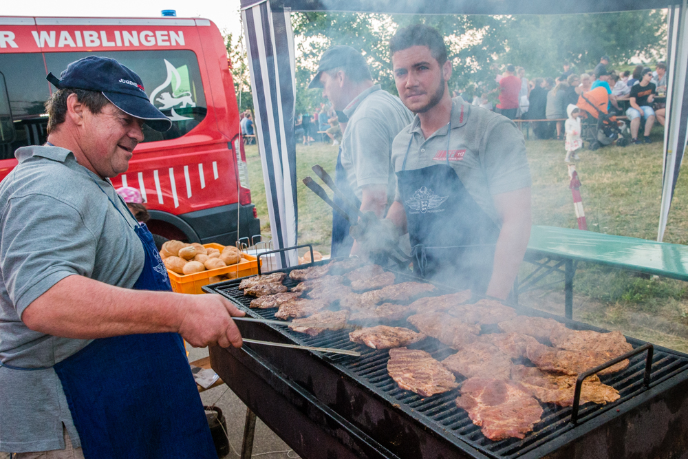 „Wir haben zum Beispiel nicht so viele eigene Grills, dass wir die Verköstigung hätten bewältigen können. Da sind wir auf andere angewiesen. Aber so ist das nun einmal in Hohenacker, man hält zusammen, tauscht untereinander aus und hilft sich gegenseitig!“