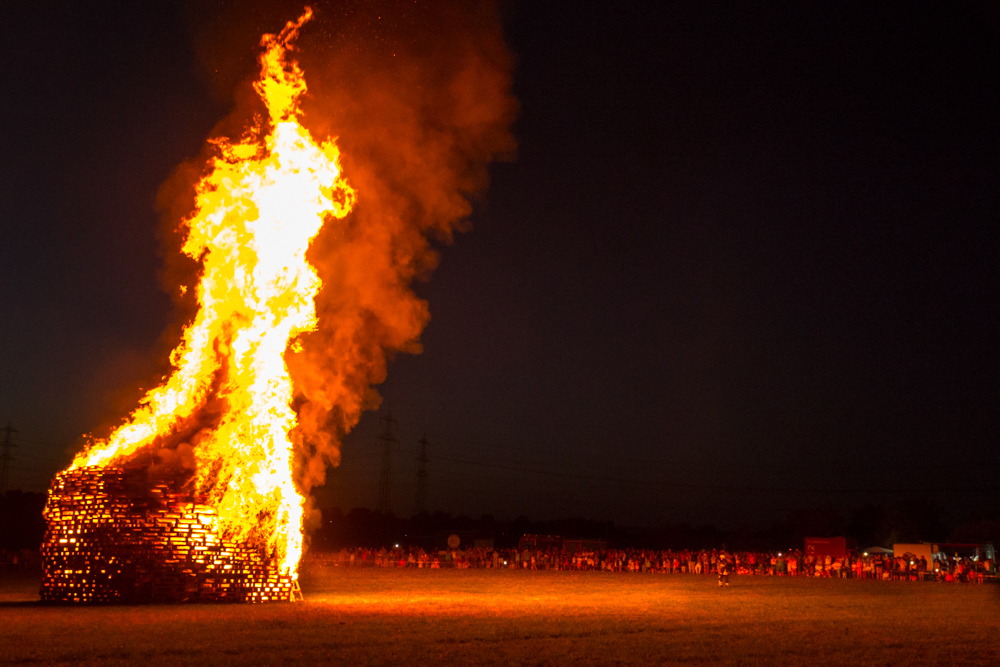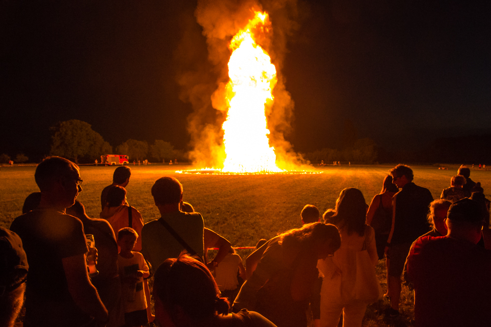 Waiblingen-Hohenacker. Zunächst etwas zaghaft, dann immer gieriger haben sich die Flammenzungen den Turm aus Einwegpaletten entlanggefressen, den die Freiwillige Feuerwehr auf der Festwiese im Nordwesten von Hohenacker errichtet hatte. Seit etwa 20 Jahren richtet sie das Sonnwendfeuer aus. Es stieß auch in diesem Jahr auf Begeisterung: Viele Zuschauer besuchten das Fest und genossen die Stimmung.