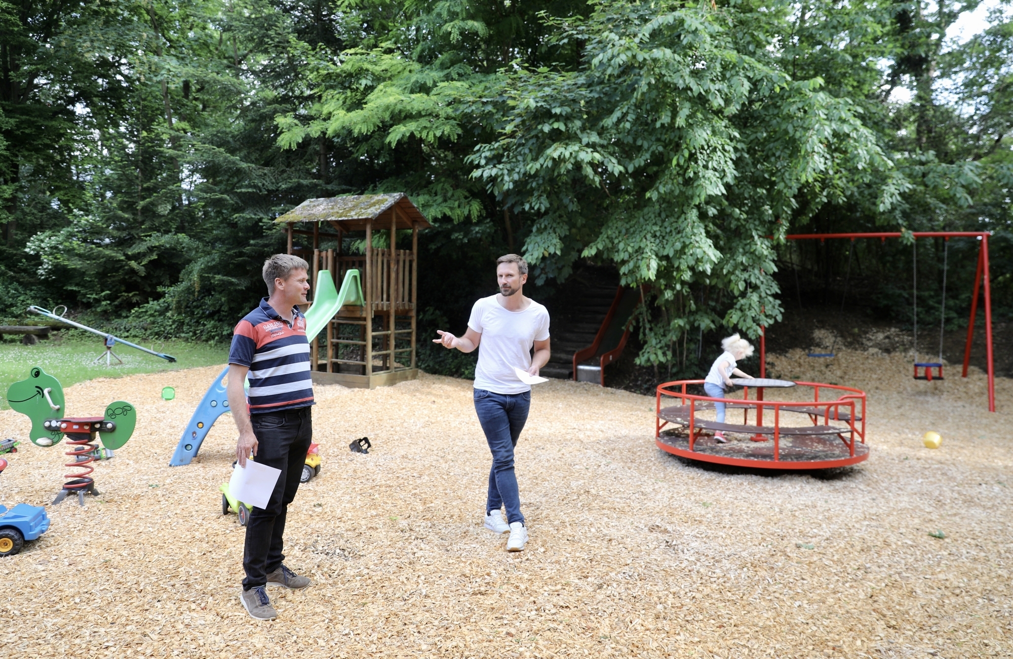 „Die Frage war, ob wir alles auf einmal machen oder in zwei Abschnitten“, sagt Nefzer. In einem Aufwasch sei’s günstiger, weil die Firma nicht zweimal anrücken müsse. Aktuell sieht’s allerdings eher nach zwei Bauabschnitten aus. Los gehen soll’s im Herbst mit der Instandsetzung der Doppelschaukel und dem Aufbau einer neuen Netzschaukel. Außerdem soll die alte Rutsche durch eine neue Hangrutsche ersetzt werden. Geplant ist zudem, sozusagen als Sahnehäubchen, eine moderne Kletteranlage. „Die ist sehr teuer, aber auch attraktiv“, sagt Nefzer.