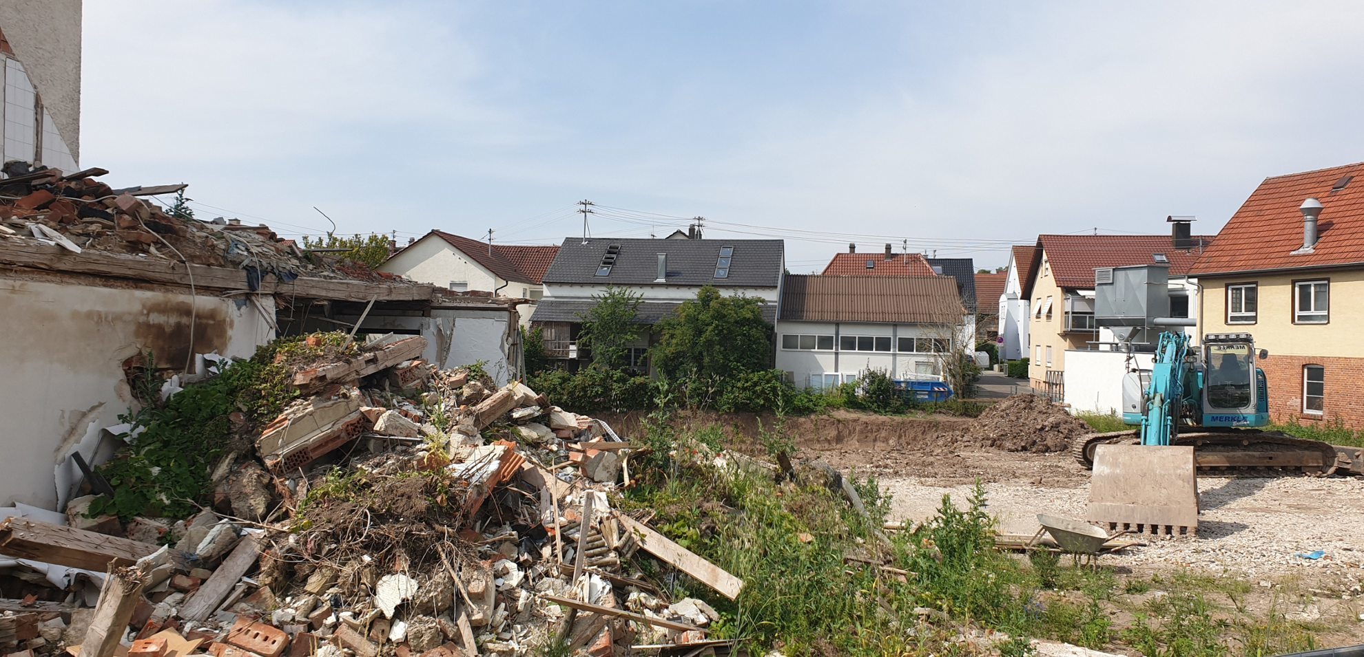 Korb. Bauschutt, ein verlassener Bagger, ein zur Hälfte abgerissener Anbau: Seit beim umstrittenen Wohnbauprojekt an der Steinacher Straße im Winter die Baugrube ausgehoben wurde, tut sich dort nichts mehr. Auch weitere Baustellen in Korb stehen still. Gegen den ursprünglichen Bauträger ist ein Insolvenzverfahren eingeleitet, im Hintergrund streiten sich zwei ehemalige Partner – und die Käufer werden nervös.