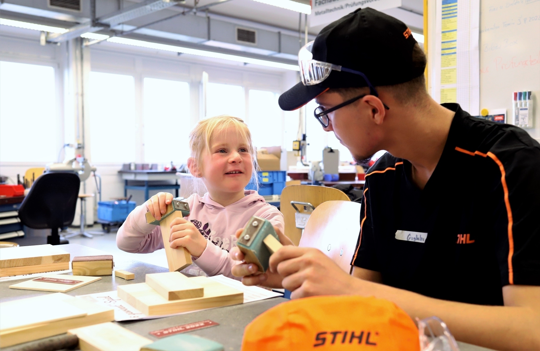 Beim jährlichen Tüftler- und Forscherinnentag dabei zu sein, hat bei uns schon Tradition“, sagt Ralf Leonhardt, Ausbilder bei Stihl. „Wir möchten jungen Kindern