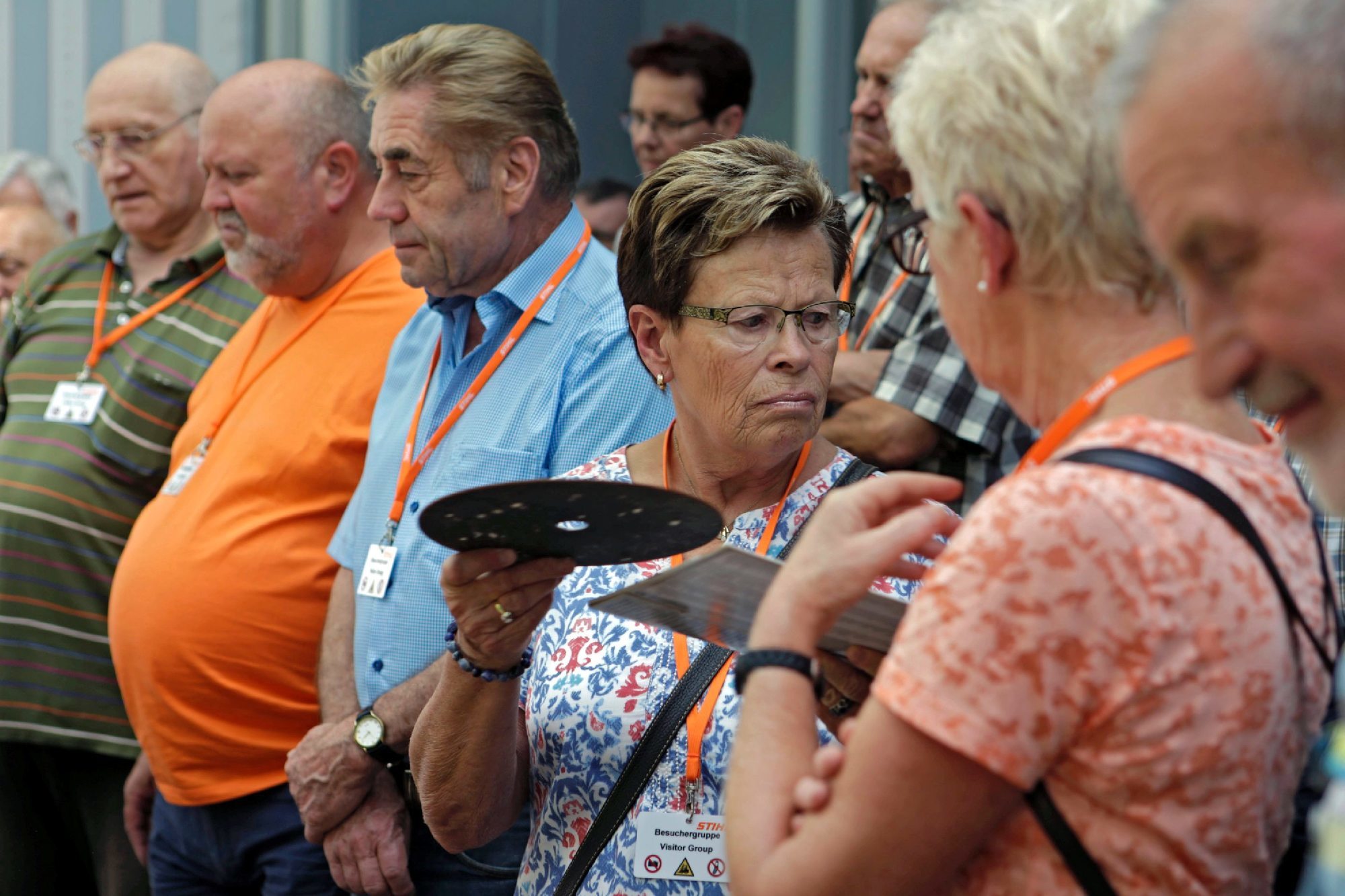 Dass die Betriebsabläufe bei Stihl gut organisiert sind, erfährt die Besuchergruppe bei einer Gelegenheit, die leider nicht erfreulich ist: Während der Tour wird ein älterer Leser ohnmächtig. Ein Ersthelfer unter den Mitarbeitern ist schnell zur Stelle. Er informiert die Betriebskrankenschwester, die ebenfalls nicht lange auf sich warten lässt. Und dann sind auch bereits ein Notarzt und Rettungssanitäter in der Montagehalle. Da die übrigen Besucher den Mann gut versorgt wissen, können sie Besichtigung fortsetzen, wenn auch in etwas getrübter Stimmung.