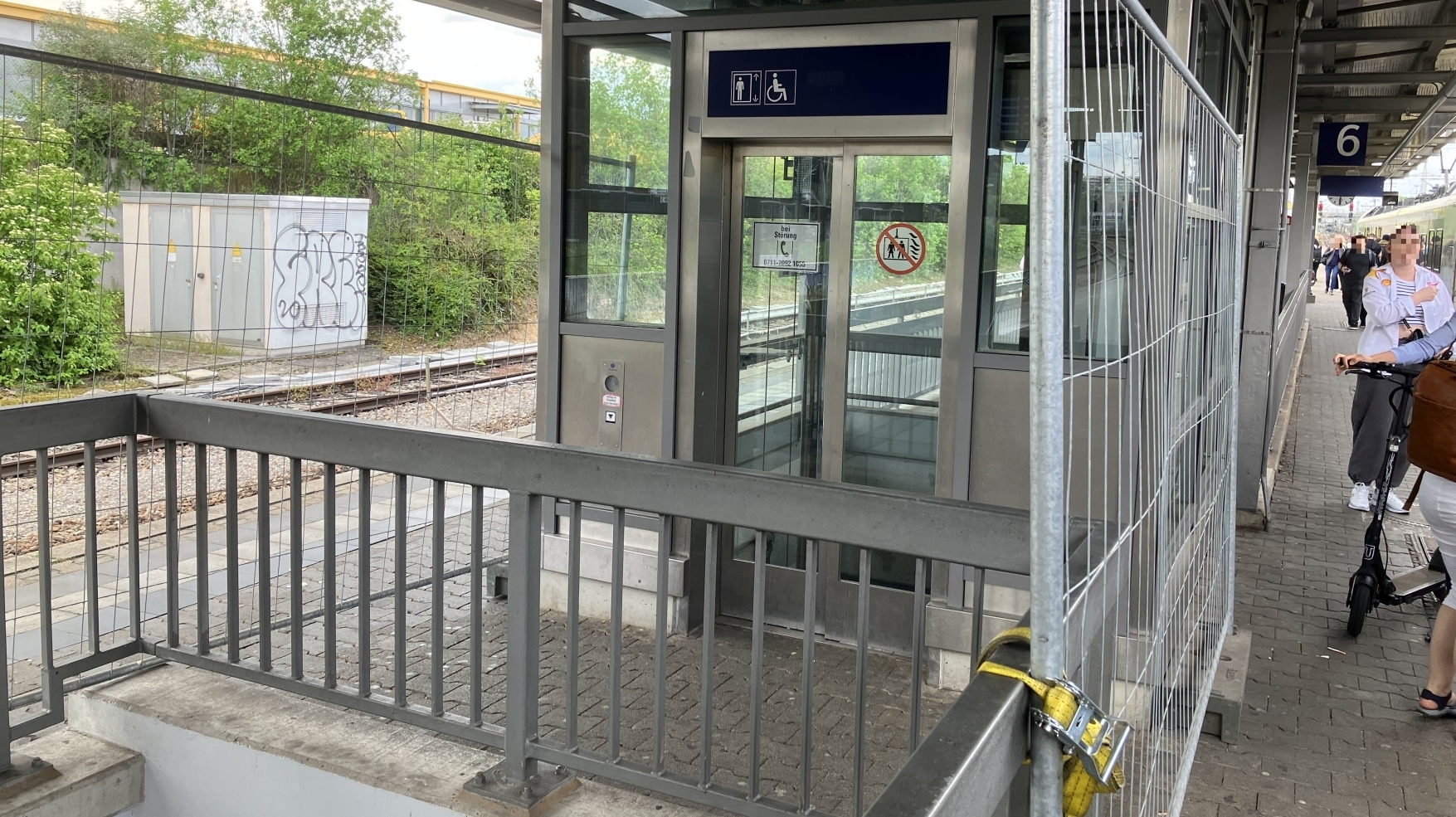 Verwirrung am Bahnhof Waiblingen: Nach monatelangen Bauarbeiten ist der Aufzug an Gleis 1 am Montag wieder in Betrieb. Nicht jedoch der Aufzug vom Vorplatz zum Tunnel unter den Gleisen – hier kommt es zu Verzögerungen bei der Abnahme, teilt ein Bahnsprecher am Montagmittag mit. Dennoch haben nun auch die Arbeiten am Fahrstuhl zu Gleis 6 und 7 begonnen. Dieser dritte Aufzug ist nun ebenfalls außer Betrieb, mit Bauzäunen abgeriegelt. Ein Rollstuhlfahrer und eine Seniorin ärgern