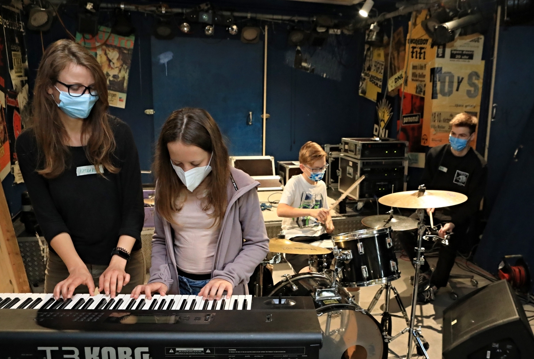 „Hot ‘n’ Cold“ von Katy Perry schallt aus der Villa Roller um kurz vor elf am Vormittag. Und noch deutlich lauter ist der elfjährige Yannick zu hören, der passend zur Musik am Schlagzeug probt. Vier Kinder und Jugendliche im Alter zwischen zehn und 18 Jahren dürfen sich im Rahmen des Sommerferienprogramms der Stadt Waiblingen an den Instrumenten Keyboard, Gitarre und Schlagzeug ausprobieren. Nach den Proben spielen die Kinder die einstudierten Pop- und Rocklieder gemeinsam als Band. Die