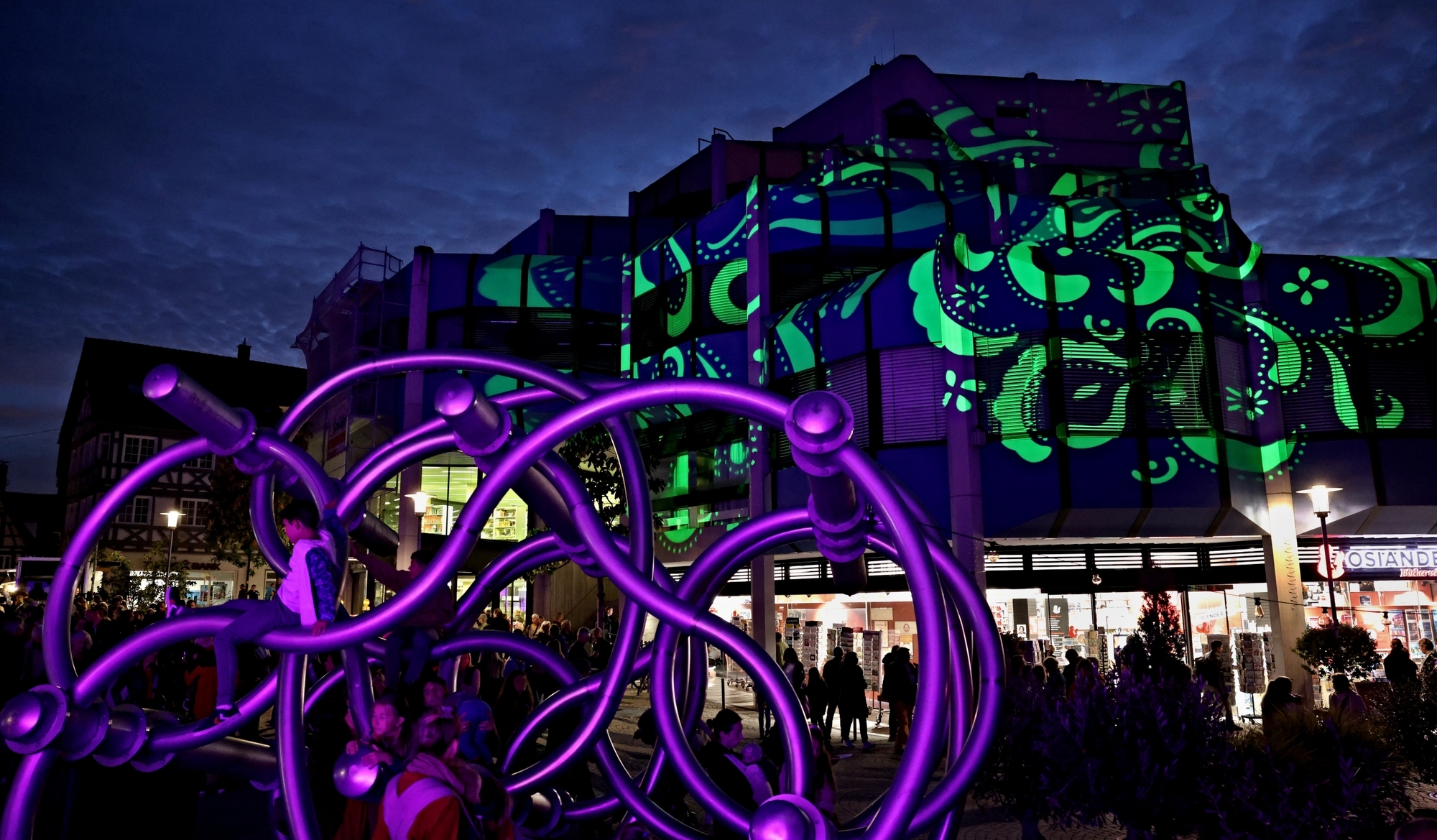 Vom Alten Postplatz über den Marktplatz bis hin zum Eva-Mayr-Stihl-Platz in Waiblingen konnten die Besucher am Freitag wieder beeindruckende Lichtspektakel an den Fassaden der Fachwerkhäuser bestaunen. An dem Abend war viel geboten und die Besucher konnten sich wie in Zeiten vor Corona entspannt treiben lassen.