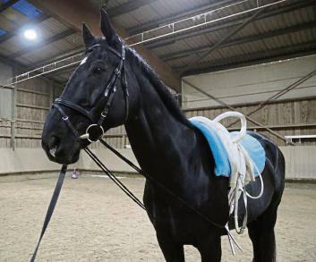 Runde um Runde galoppiert Delargo im Gleichmaß um seine Longenführerin herum. Der 13-jährige Oldenburger Wallach gehört bereits seit 2010 zum Voltigierteam der Reitergemeinschaft (RG) Hegnach-Oeffingen. Er ist ein alter Hase und weiß, was er zu tun hat. Und wie die anderen Teammitglieder auch muss er sich vor dem Training aufwärmen. Seine menschlichen Kameraden sind derweil mit Dehn- und Kräftigungsübungen auf einer großen Gymnastikmatte beschäftigt. Bunte Gummibänder, Gewichte und Griffe, mit denen die Voltigierer ihren Handstand zunächst auf dem Reithallenboden proben, kommen hier zum Einsatz.