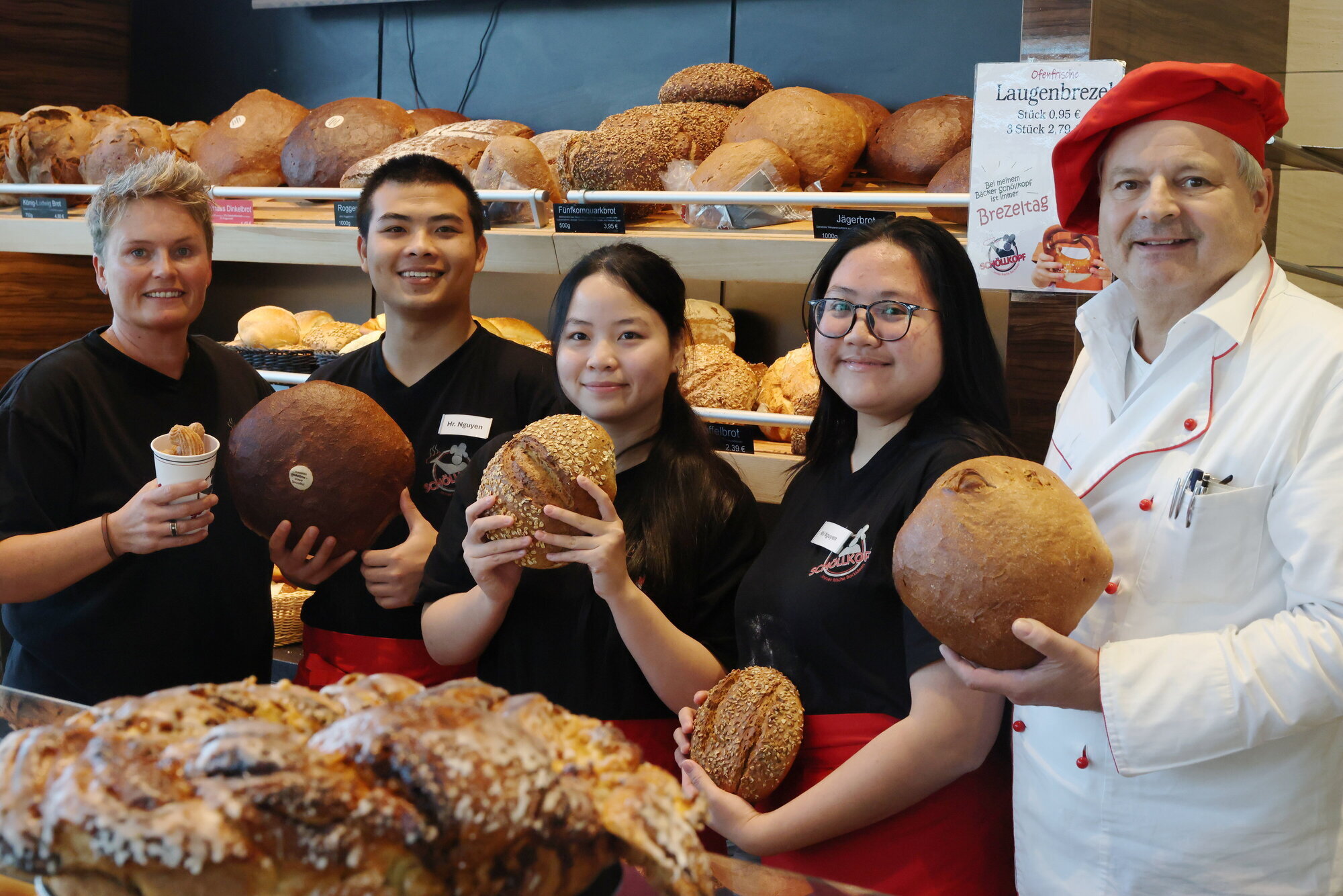 Waiblingen. Anders ginge es nicht oder lange nicht so gut. „Das ist die Zukunft. Nur so kriegen wir unsere Fachkräfte“, sagt Bäckermeister Hermann Schöllkopf. Insgesamt 13 Auszubildende haben im September im Waiblinger Bäckereibetrieb ihren beruflichen Neustart gewagt - darunter sind drei junge Menschen, die hierfür extra aus Vietnam angereist sind. Weitere Auszubildende, die vor einiger Zeit aus dem afrikanischen Ghana nach Deutschland gekommen waren, haben ihre Ausbildung