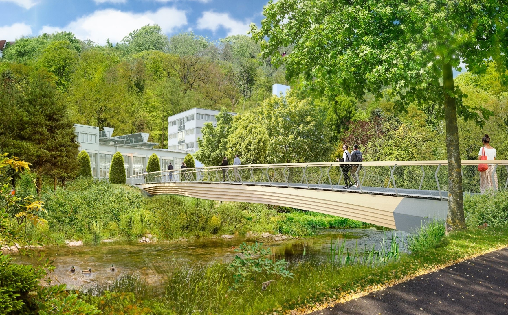 Sofern möglich, wurden Mitarbeitende des Stihl-Werks 1 in Wablingen angehalten, am Mittwoch, 26. April, im Home-Office zu bleiben. Grund ist eine spektakuläre Baumaßnahme: Am Morgen wird eine 40 Meter lange Brücke über die Rems per Schwertransport angeliefert und mit einem Kran an ihren Bestimmungsort gehievt. Der Steg sorgt dafür, dass die Mitarbeiterinnen und Mitarbeiter auf schnellstem Weg von den Parkplätzen zum Werk gelangen können.