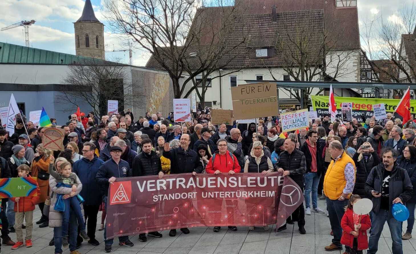 Nachdem in den vergangenen Wochen Hunderttausende in ganz Deutschland für Demokratie und gegen Rassismus demonstriert haben, hat nun auch Waiblingen die erste Demonstration hinter sich: Am Samstagnachmittag (17.02.) kamen auf dem Rathausplatz nach Polizeiangaben circa 1000 Menschen zusammen, um gegen rechts zu demonstrieren. Der Platz vor der Waiblinger Verwaltung war damit voll.