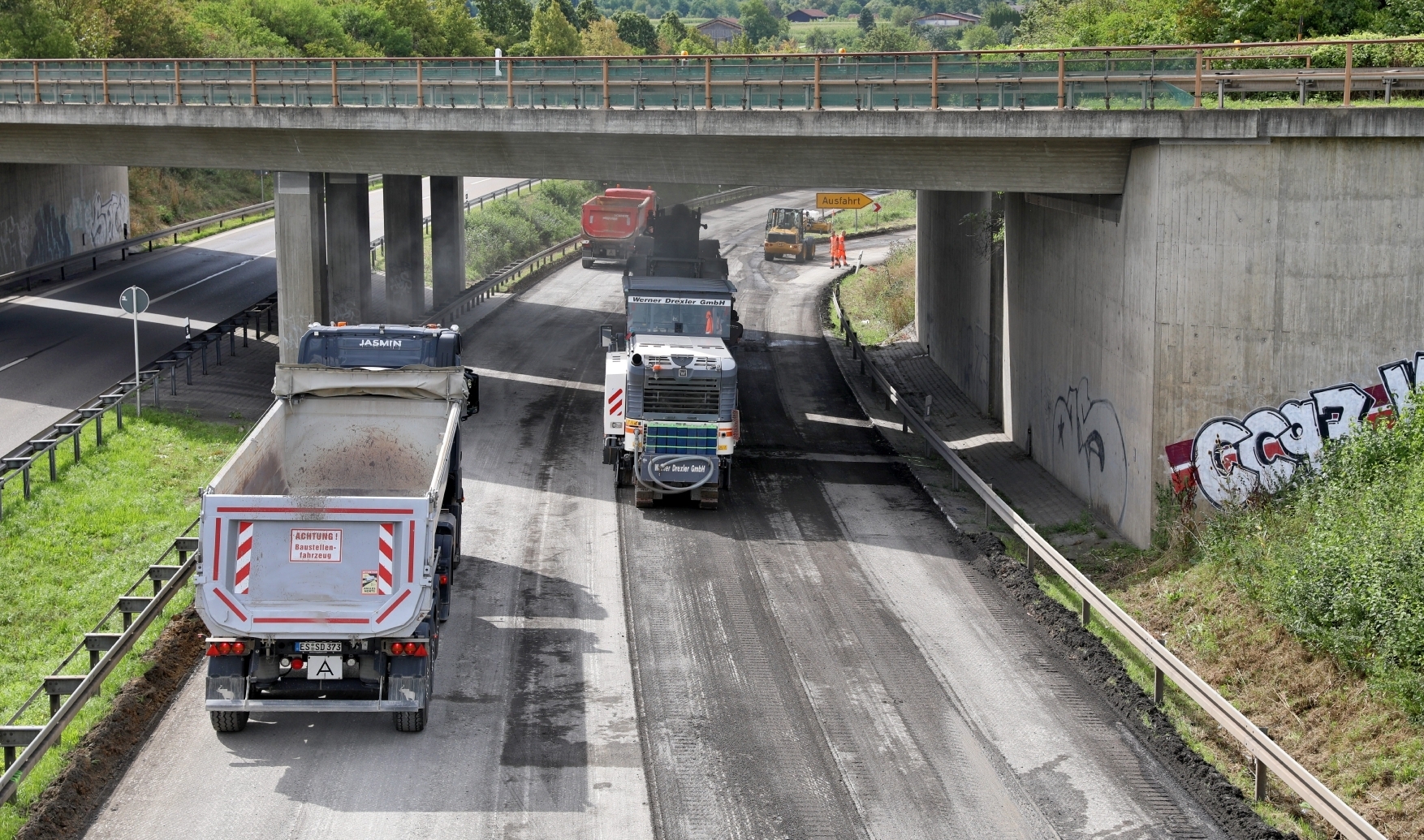 Die Instandsetzung des B14-Anschlusses Waiblingen-Süd läuft auf Hochtouren. Bei trockenem Wetter am Dienstag wurden große Teile des beschädigten Belags abgefräst. Seit Montag (7.8.) ist er in Fahrtrichtung Stuttgart vollständig gesperrt. Auch die Fahrt von Waiblingen-Süd in Richtung Schorndorf/Aalen ist nicht möglich. Nach Einschätzung des Landratsamts Rems-Murr führte die Sperrung bisher zu keinen größeren Verkehrsbeeinträchtigungen.