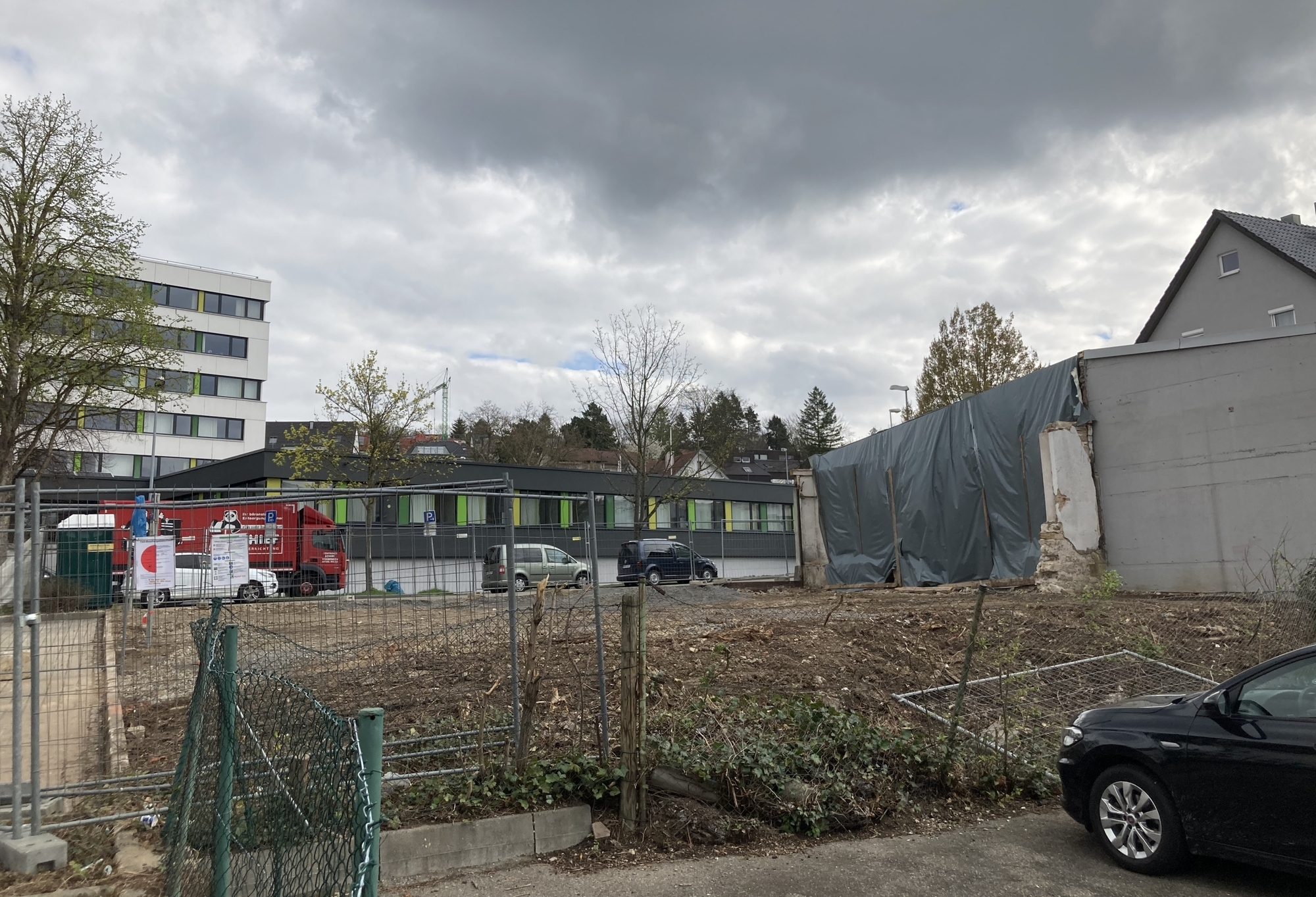 Jahrelang stand das Haus in der Winnender Straße 32 in Waiblingen leer – nun ist das als „Schandfleck“ bekannte Gebäude fast komplett abgerissen. „Der Großteil des Gebäudes und der Bodenplatte ist abgebrochen“, erläutert Peter Brandstetter, Technischer Geschäftsführer der städtischen Wohnungsgesellschaft. Ein Teil der Wand zum Bestandsgebäude könne aber erst durch den Rohbauer, der die Brandwand auf dem Nachbargrundstück errichten soll, Zug um Zug abgebrochen werden.