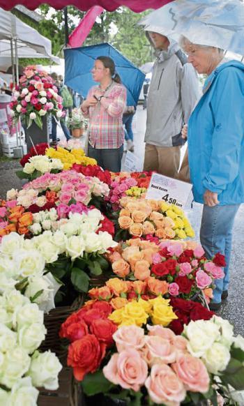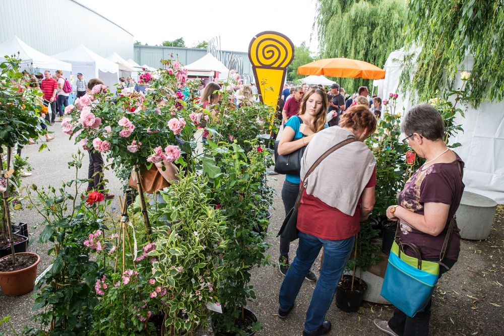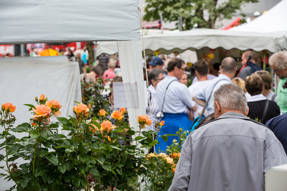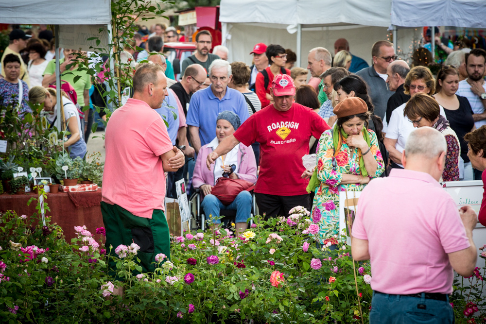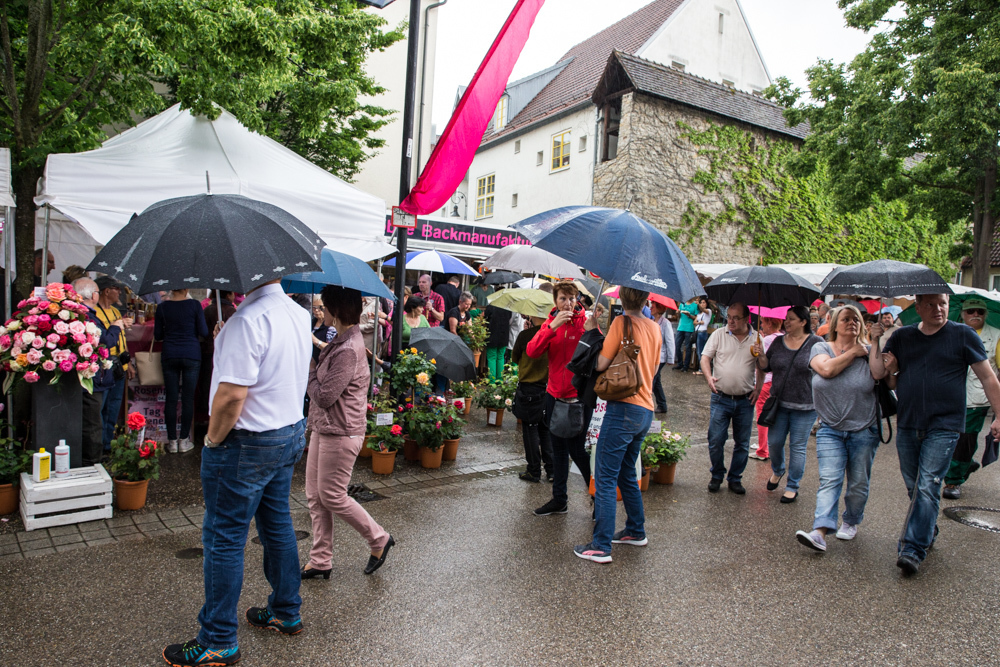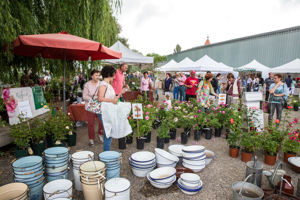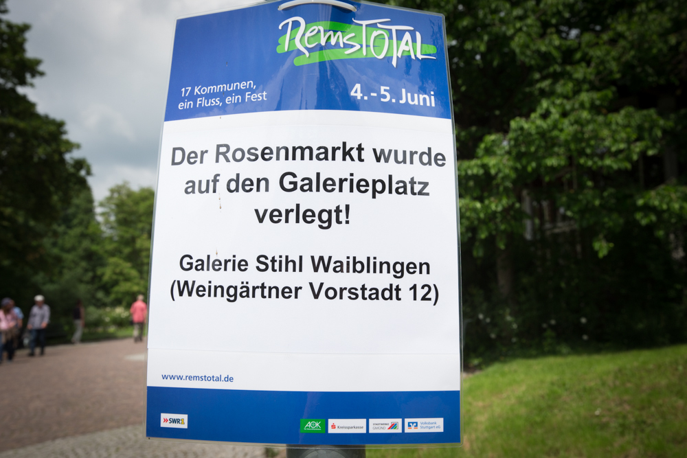 Der Rosenmarkt fand zwar statt, allerdings nicht auf der Brühlwiese sondern um die Galerie Stihl herum. Am Sonntagmittag flutete ein Unwetter den Markt