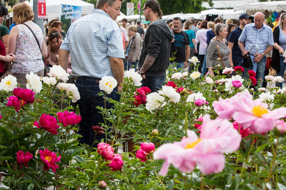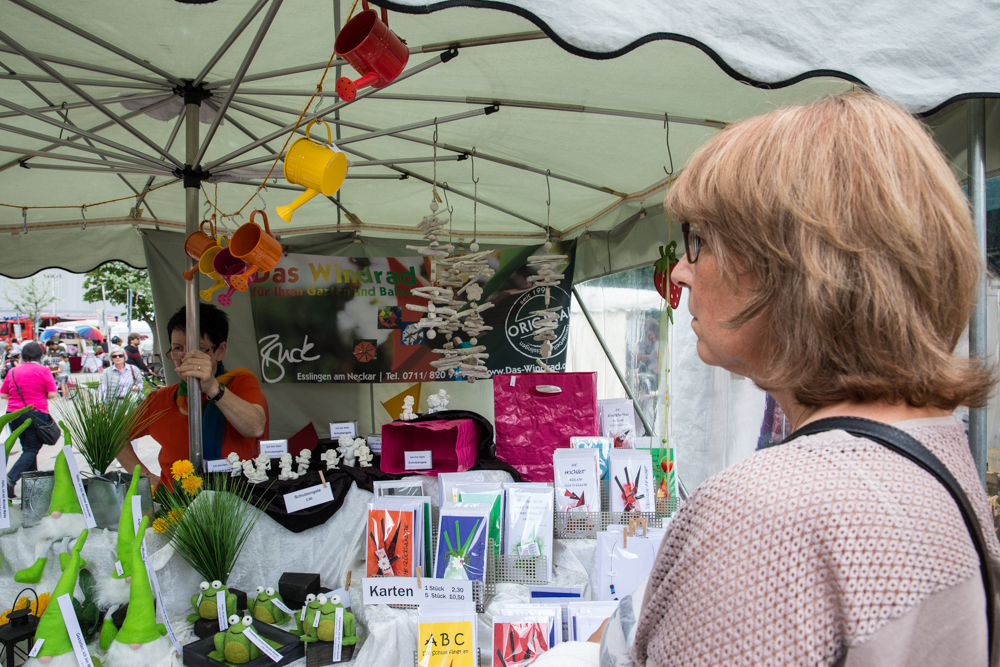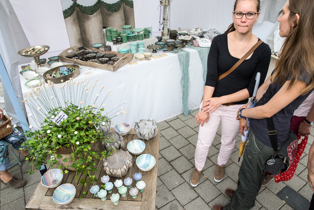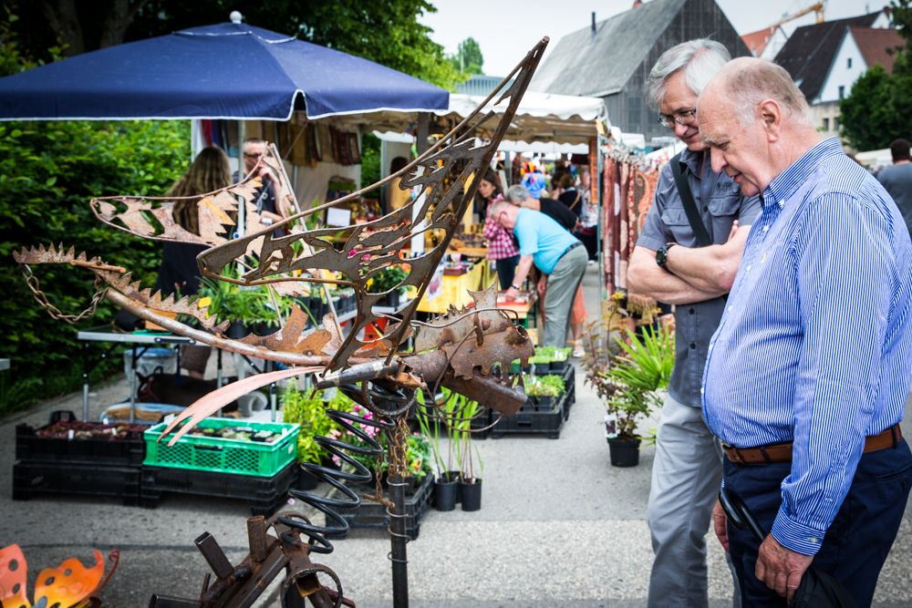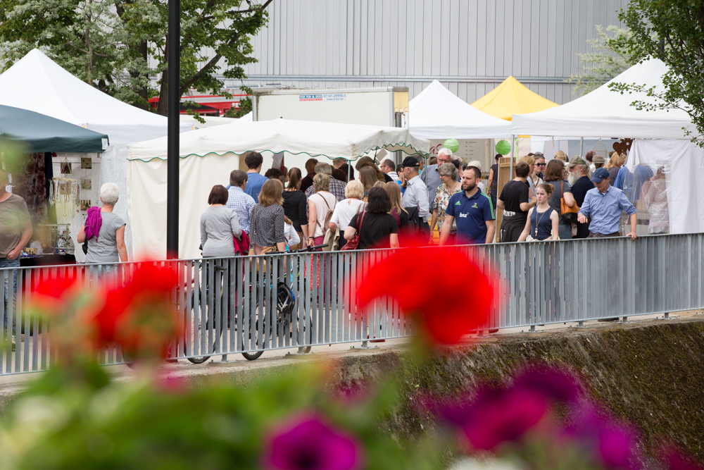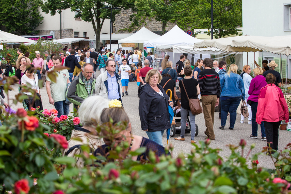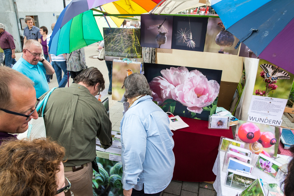 Der Rosenmarkt fand zwar statt, allerdings nicht auf der Brühlwiese sondern um die Galerie Stihl herum. Am Sonntagmittag flutete ein Unwetter den Markt