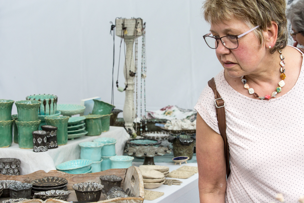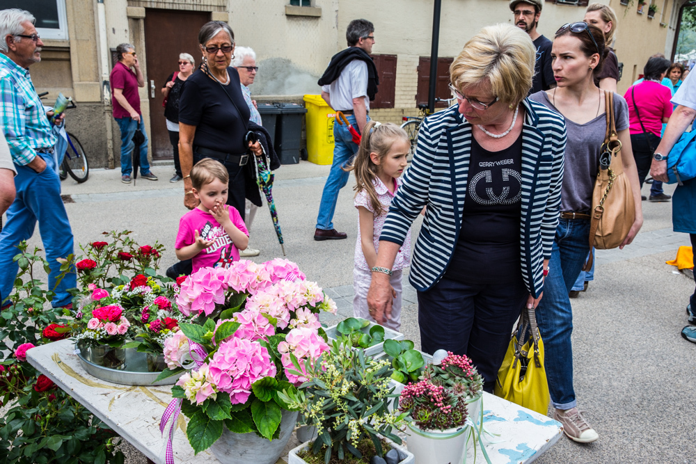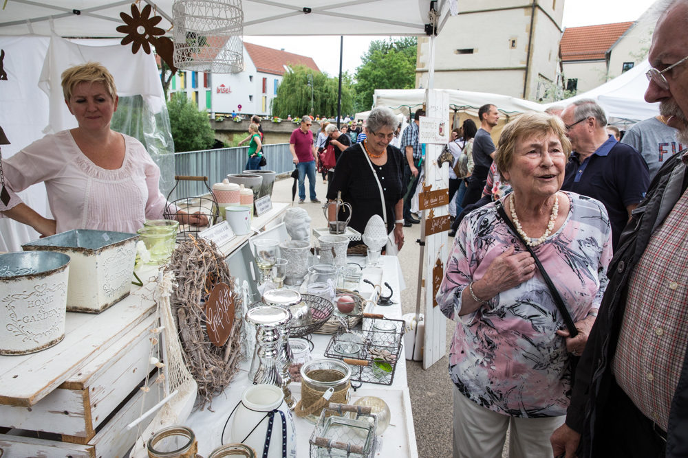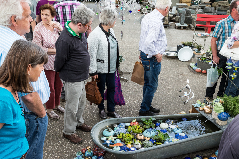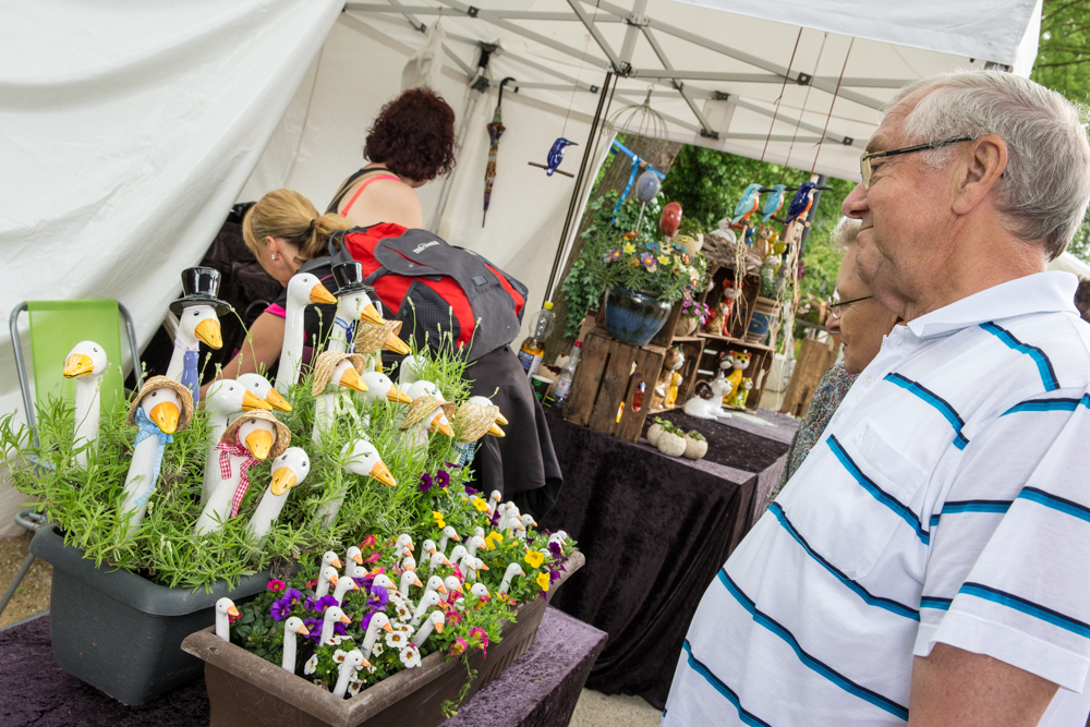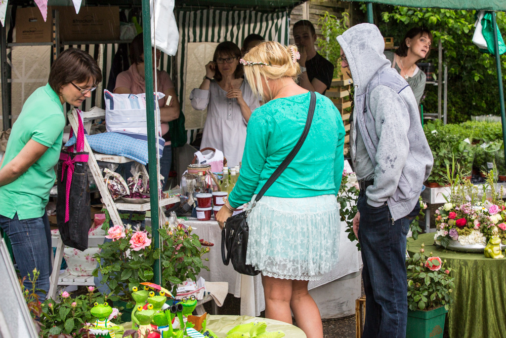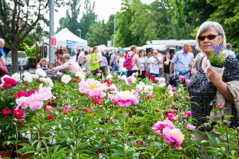Der Rosenmarkt fand zwar statt, allerdings nicht auf der Brühlwiese sondern um die Galerie Stihl herum. Am Sonntagmittag flutete ein Unwetter den Markt