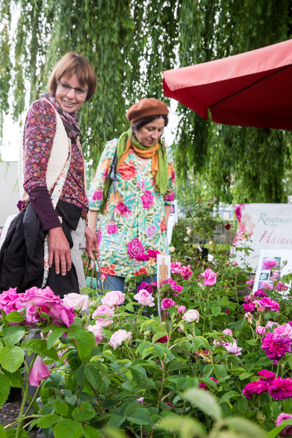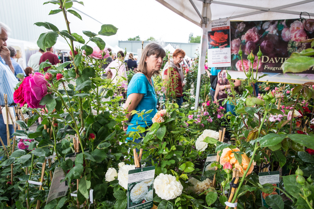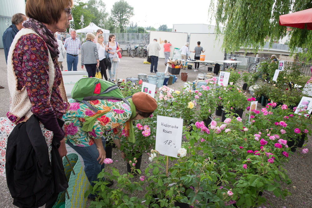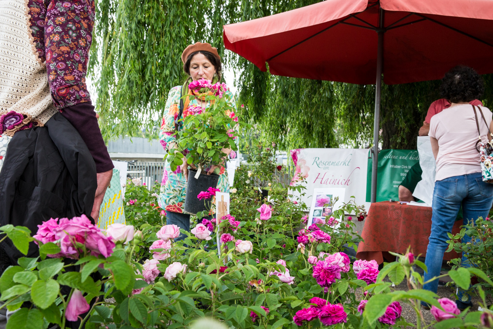 Menschen, die Augen für die Natur haben, ein Herz für alles Blühende und einen gärtnerischen Sinn, landen beim Waiblinger Rosenmarkt mitten im Paradies. Ein blühender Garten Eden tut sich an den Remsgestaden auf. Es ist eine Einkehr zu aufrechten buschigen Sträuchern, meterhohen Kletter- und Stammrosen, die einhergeht mit einem Staunen über Edelrosen, gefüllte, verzweigte, historische und englische Rosen. Am Stand von Floristin Irmgard Maile aus Kernen halten gartenaffine Spezialisten mit Fragen nach bestimmten Rosensorten ebenso Ausschau wie jene, „die Rosen einfach toll und schön finden und ausprobieren wollen“, berichtet sie.