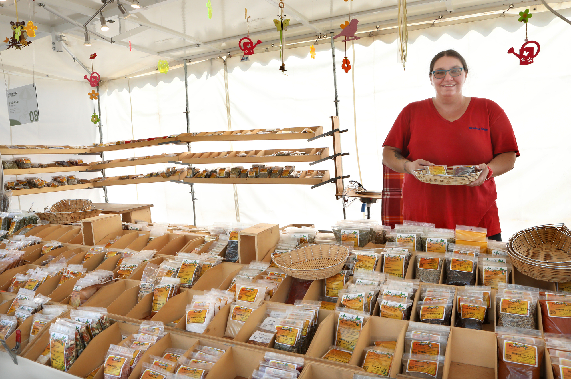 Geschrotete Chilis, gemahlener Rosmarin oder aber gerebelter Thymian – an dem Stand von Melanie Klein können Marktbesucher in die Welt der Gewürze eintauchen. Mehr als 200 Sorten hat die 32-Jährige jeden zweiten Mittwoch auf dem Waiblinger Wochenmarkt dabei. Die Auswahl ist groß, die Düfte sind verlockend.
