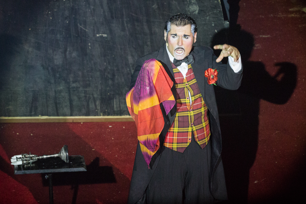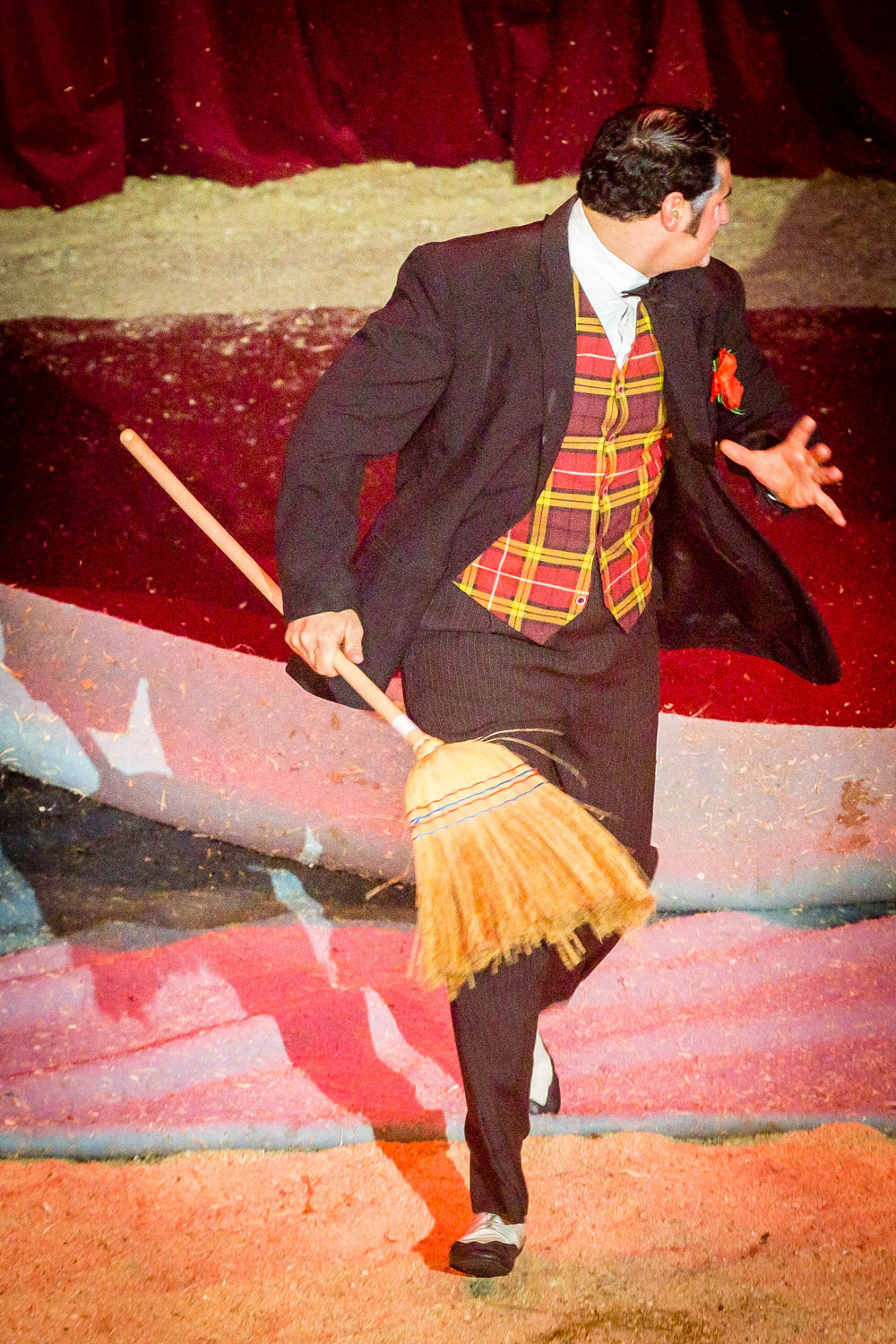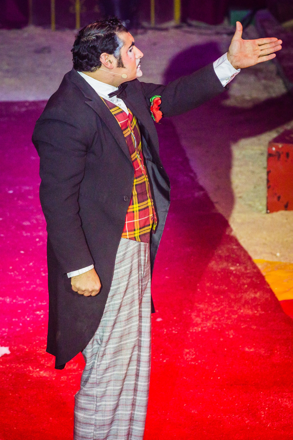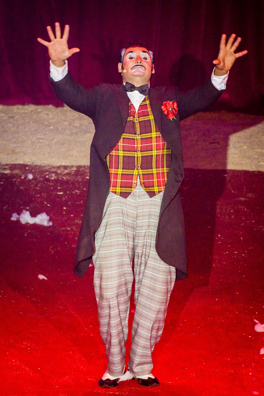 Schon wird es dunkel im Zelt, das aufgeregte Getuschel auf den Rängen verstummt, und die Vorstellung beginnt mit dem italienischen Clown, der das Publikum zum Wiener Walzer dirigiert, klatschen, Buh, Hah, und Bah rufen lässt. Nach den Nikoläusinnen, die in kurzen Mäntelchen mit viel Tüll und wenig Stoff „Jingle Bells“ in einer Rockversion aufführen, sind die ersten Artisten dran. Es ist eine Akrobatik-Truppe, die sich mit wildesten Verrenkungen, Salti und Rollen in alle möglichen und unmöglichen Richtungen durch erbarmungslos rotierende Springseile turnt, bevor sie waghalsige Menschenpyramiden baut – und am Ende sogar beides kombiniert, das Seilspringen und das Pyramidenbauen.