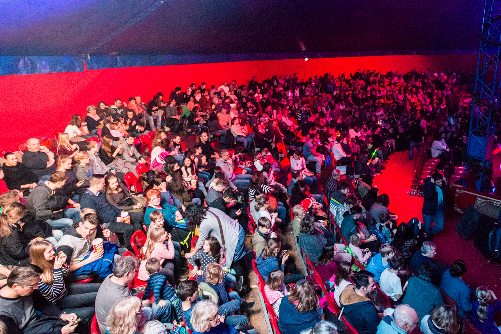 Eine halbe Stunde vor Vorstellungsbeginn herrscht Verkehrschaos auf dem Parkplatz vor der Rundsporthalle. Menschen jeden Alters und unterschiedlicher Herkunft strömen in Richtung des großen blau-roten Zirkuszelts. „Wir hatten Sorge, wie die Aktion angenommen wird“, berichtet der Lion Manfred Kerler, der gemeinsam mit seinen Clubkollegen in neongelber Ordner-Warnweste vor dem Eingang steht und die Besucher hereinbittet. Bereits jetzt ist klar: Diese Sorge war unbegründet.